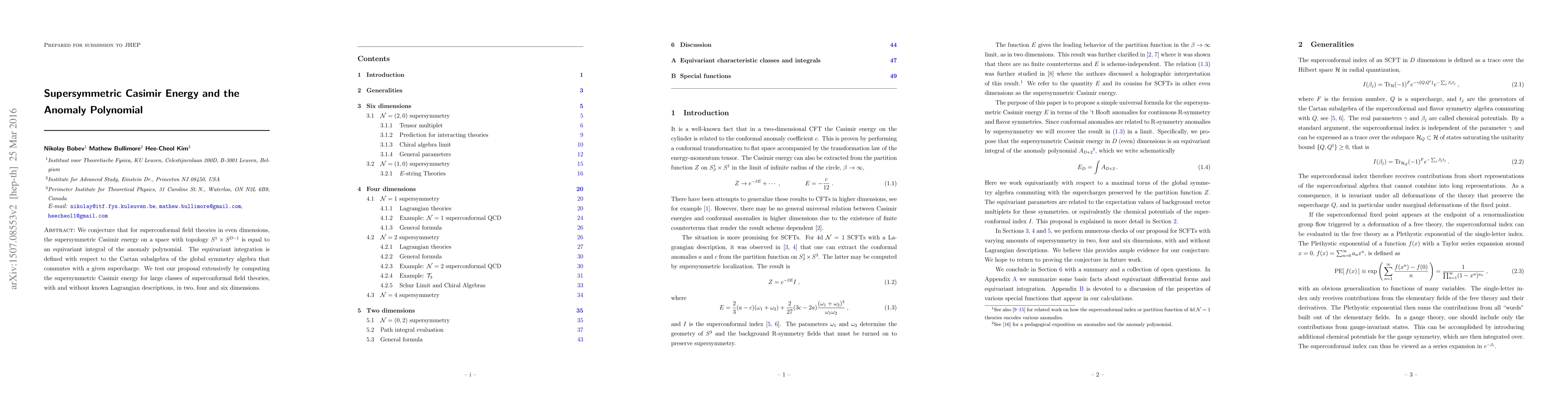The paper proposes a conjecture relating the supersymmetric Casimir energy on $S^1 imes S^{D-1}$ to an equivariant integral of the anomaly polynomial for superconformal field theories in even dimensions, tested extensively across various dimensions and types of theories.