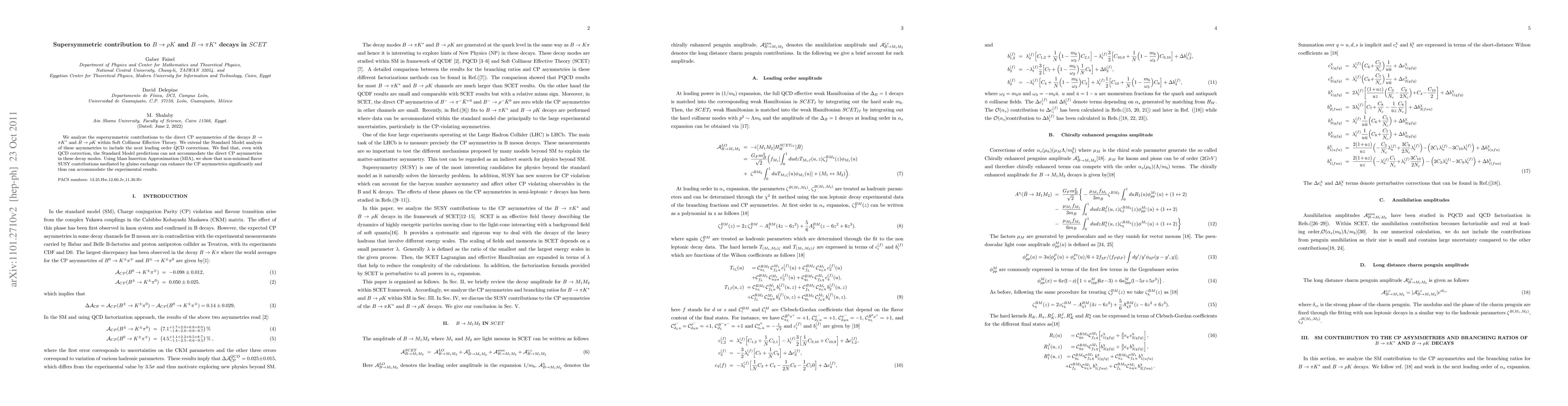 This paper investigates supersymmetric contributions to CP asymmetries in $B \to \pi K^*$ and $B \to \rho K$ decays using Soft Collinear Effective Theory, finding that Standard Model predictions fall short. It demonstrates that non-minimal supersymmetric flavor contributions, particularly from gluino exchange, can significantly enhance these asymmetries to match experimental observations.