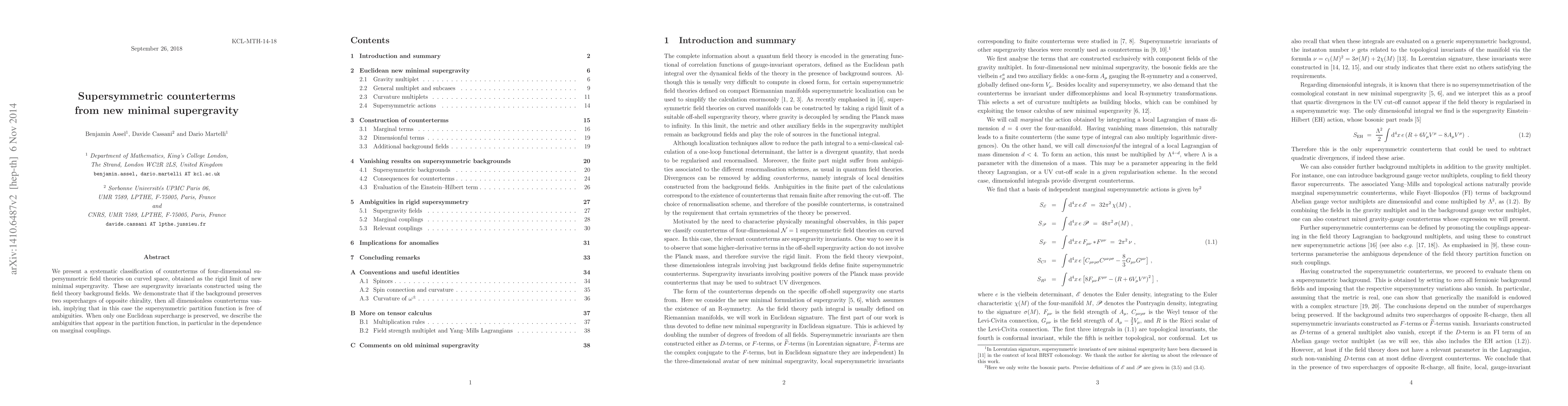 Researchers classify counterterms in supersymmetric field theories on curved space, finding that some vanish when two supercharges are preserved, while others appear with a dependence on marginal couplings.