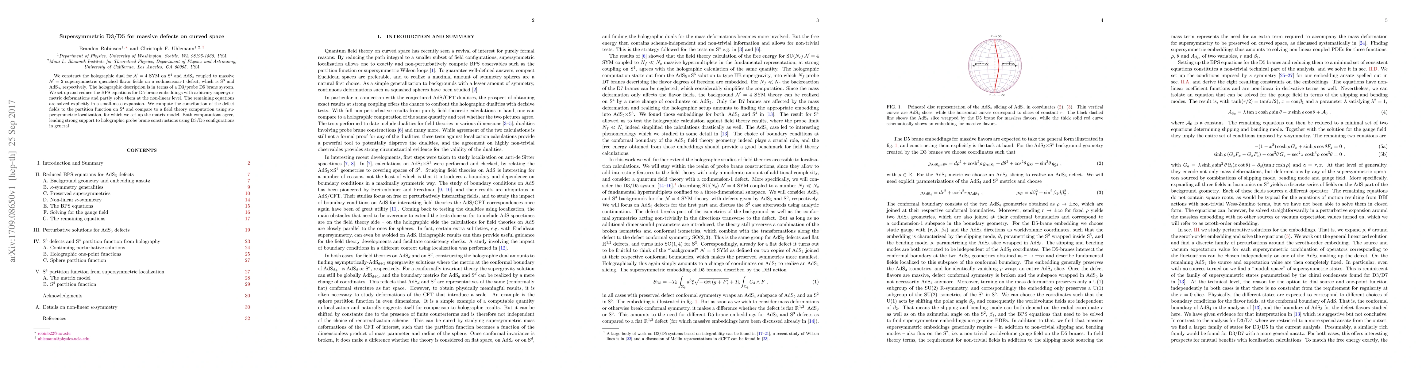 This research constructs a holographic dual for $\mathcal N=4$ SYM on curved spaces, focusing on massive supersymmetric defects. The authors solve BPS equations for D3/D5 brane embeddings and verify agreement between holographic and field theory computations, supporting the D3/D5 probe brane model.