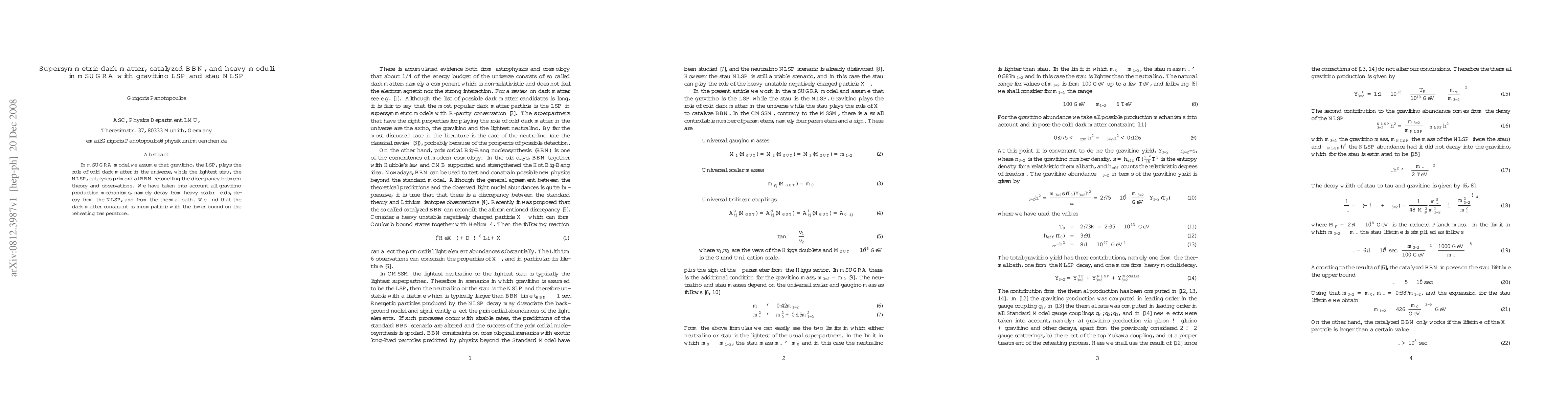 This paper explores the mSUGRA model where gravitinos serve as cold dark matter, and the lightest stau catalyzes primordial Big Bang nucleosynthesis (BBN). The study considers various gravitino production mechanisms but finds that dark matter constraints conflict with the lower bound on the reheating temperature.