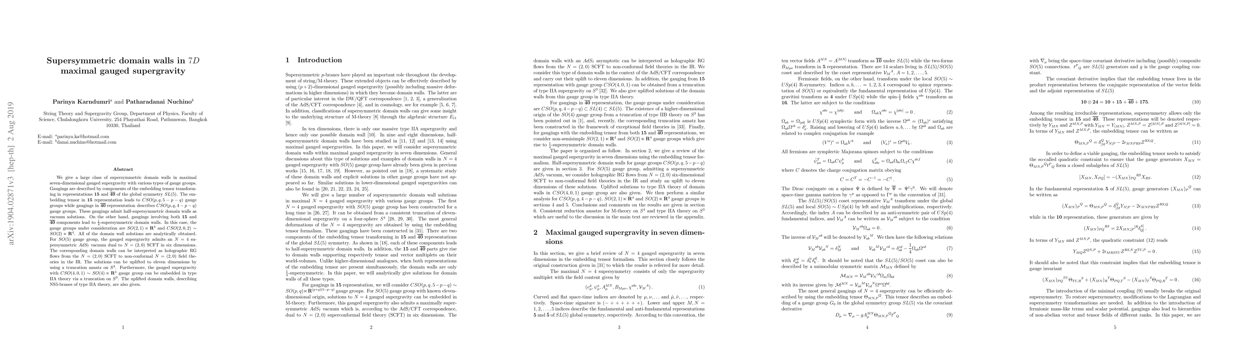 This paper explores supersymmetric domain walls in maximal 7D gauged supergravity, identifying half- and $\frac{1}{4}$-supersymmetric solutions for various gauge groups. The domain walls represent holographic renormalization group flows and can be uplifted to 11D and embedded in type IIA string theory.
