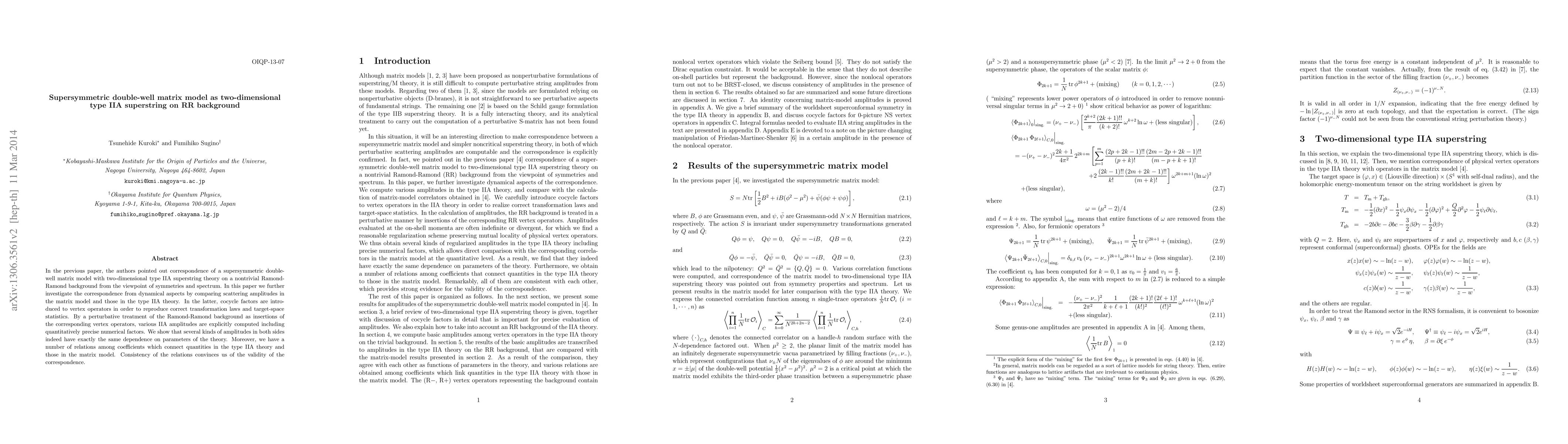 Researchers investigate correspondence between a supersymmetric double-well matrix model and two-dimensional type IIA superstring theory on RR background, finding exact matches in scattering amplitudes and relations among coefficients.