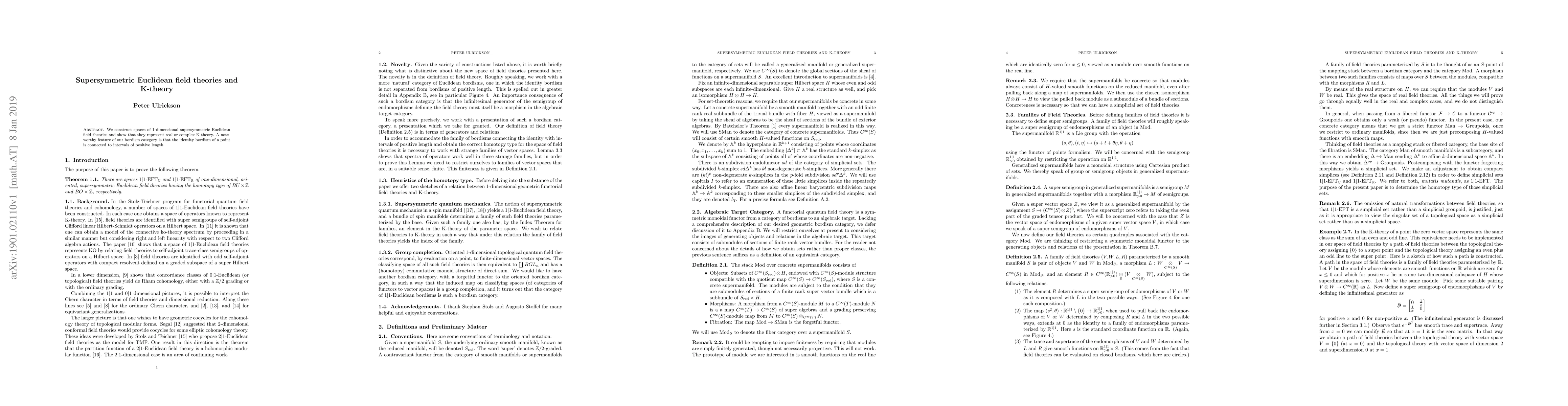 This paper constructs spaces of 1-dimensional supersymmetric Euclidean field theories and demonstrates their equivalence to real or complex K-theory, highlighting a unique connection between the identity bordism of a point and intervals of positive length.