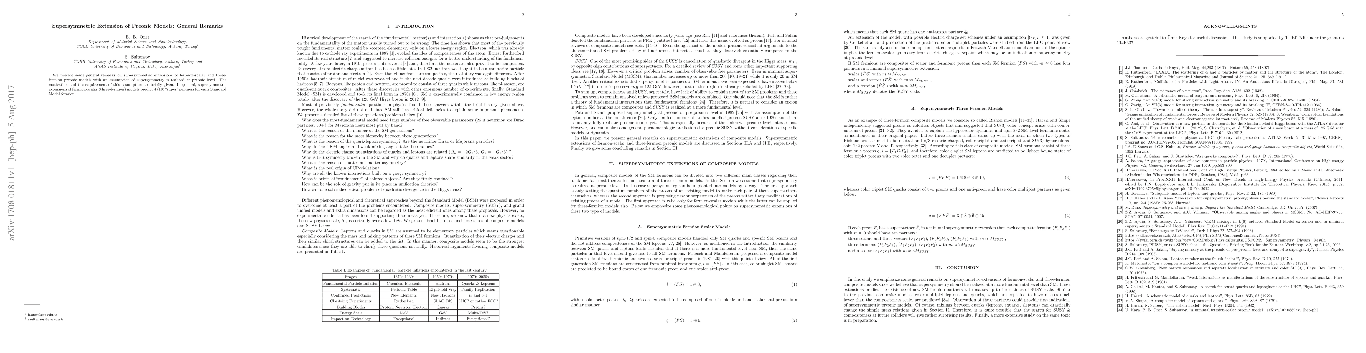 We present some general remarks on supersymmetric extensions of fermion-scalar and three-fermion preonic models with an assumption of supersymmetry is realized at preonic level. The motivation and the requirement of this assumption are briefly given. In general, supersymmetric extensions of fermion-scalar (three-fermion) models predict 4 (10) "super" partners for each Standard Model fermion.