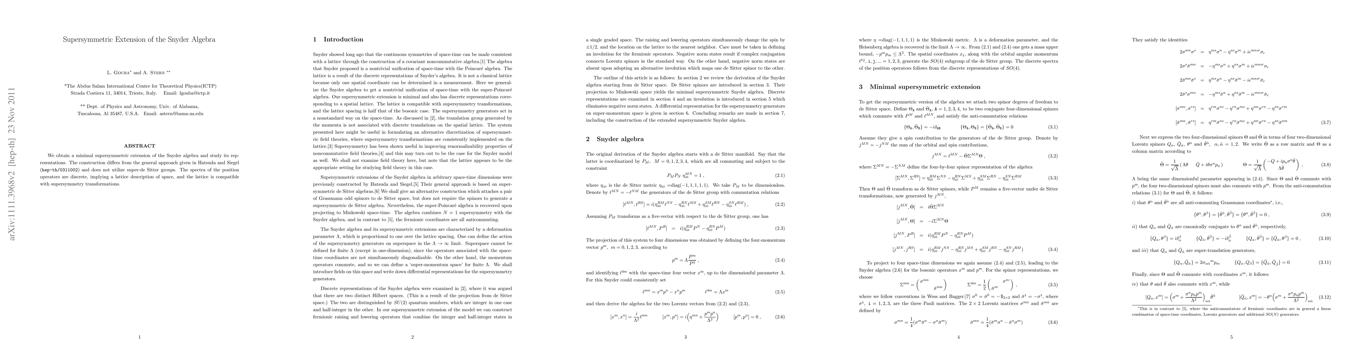 We obtain a minimal supersymmetric extension of the Snyder algebra and study its representations. The construction differs from the general approach given in Hatsuda and Siegel ({\tt hep-th/0311002}), and does not utilize super-de Sitter groups. The spectra of the position operators are discrete, implying a lattice description of space, and the lattice is compatible with supersymmetry transformations.