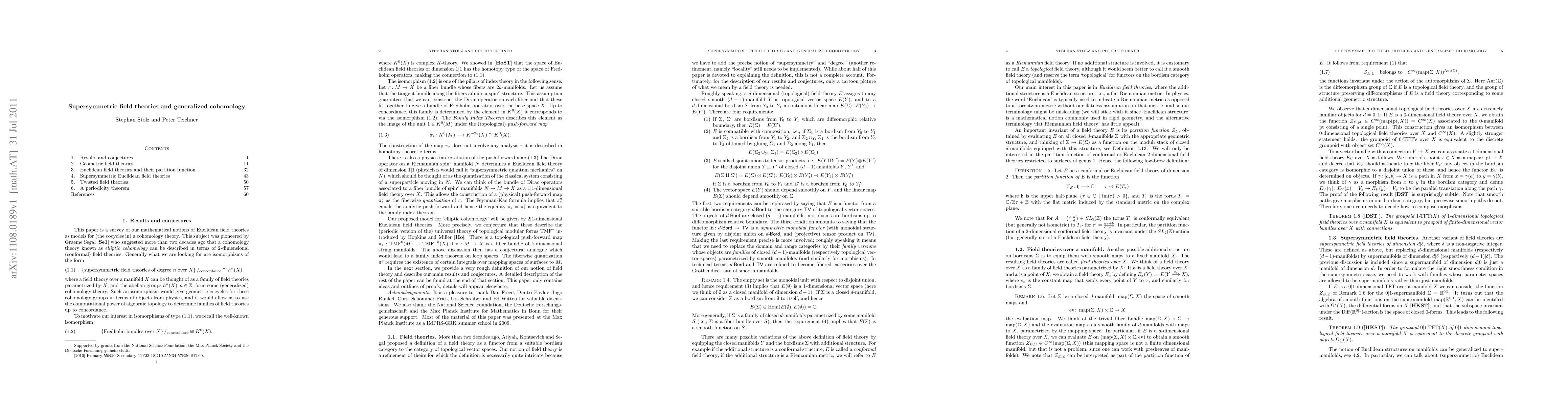 This paper surveys results and conjectures linking supersymmetric field theories to cohomology theories, defining refined axioms for supersymmetric Euclidean field theories and outlining proofs of their connections to cohomology.