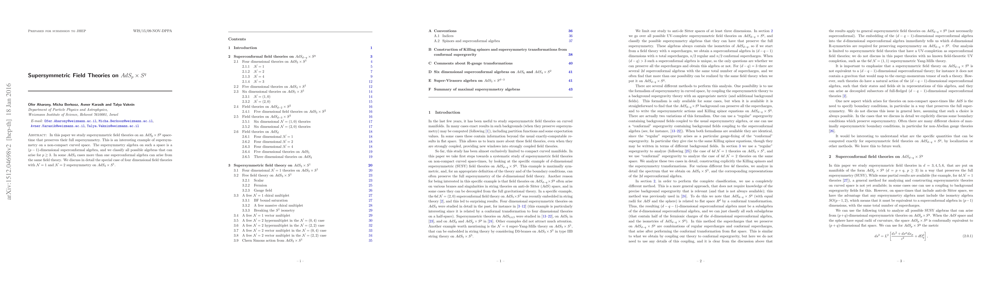 This paper classifies supersymmetric field theories on AdS_p x S^q that preserve their full supersymmetry, identifying the (p-1)-dimensional superconformal algebra. Special attention is given to four-dimensional N=1 and N=2 supersymmetric theories on AdS_3 x S^1, highlighting cases where multiple superconformal algebras can emerge from the same field theory.