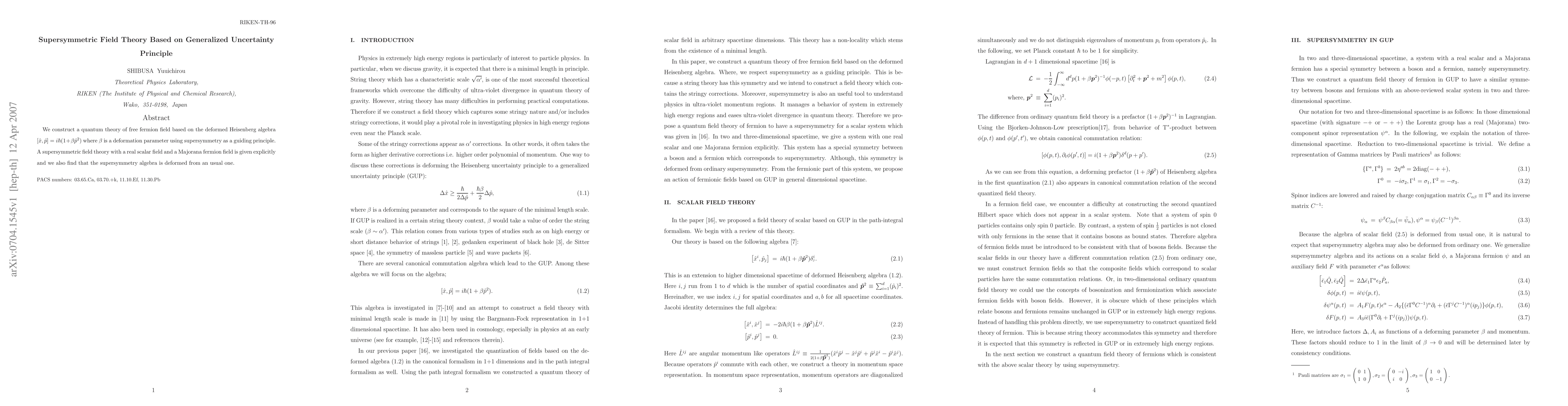 This paper constructs a supersymmetric quantum field theory of free fermions based on the generalized uncertainty principle, explicitly presenting a theory with a real scalar and a Majorana fermion field, and demonstrating a deformed supersymmetry algebra.