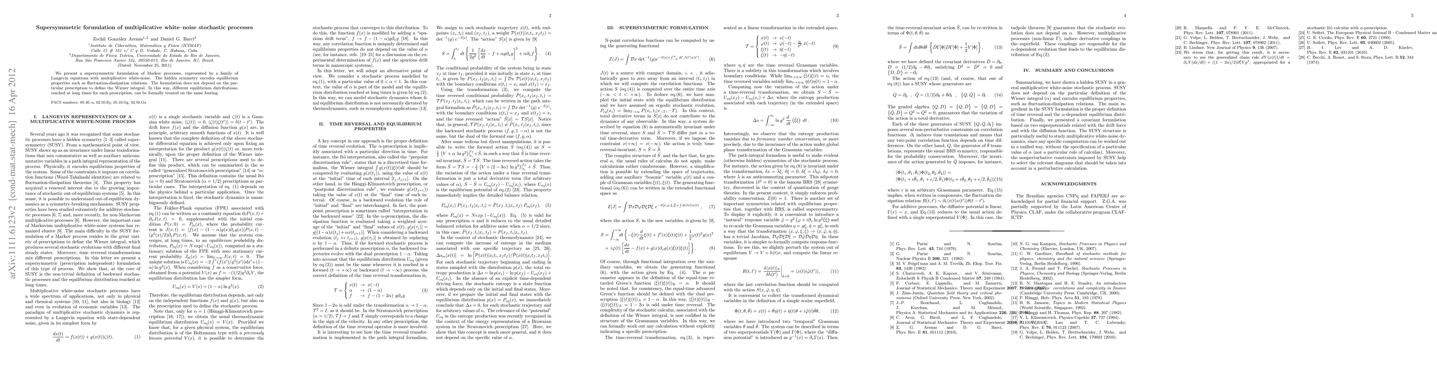 This paper introduces a supersymmetric framework for Markov processes governed by Langevin equations with multiplicative white-noise, revealing hidden symmetries that encode equilibrium properties like fluctuation-dissipation relations. The approach is independent of specific Wiener integral definitions, allowing for unified treatment of various equilibrium distributions.
