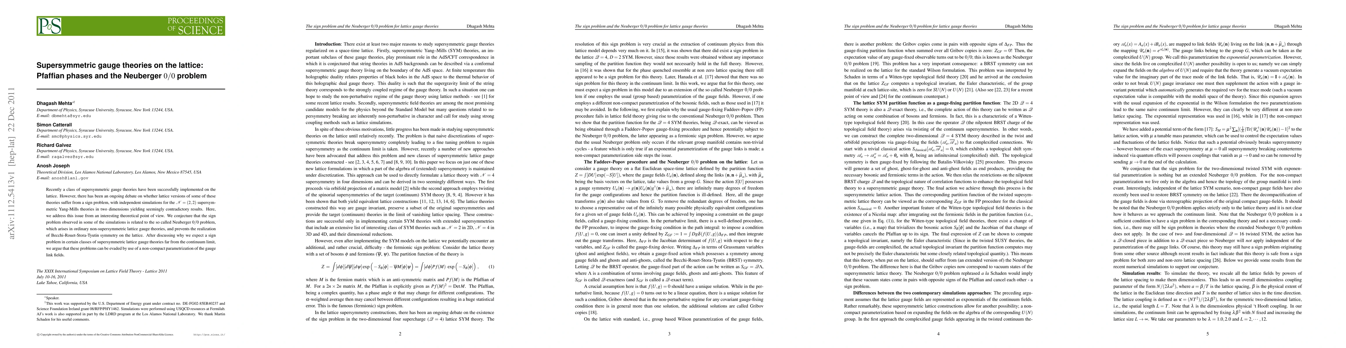This paper investigates a sign problem in supersymmetric gauge theories on the lattice, proposing that it's related to the Neuberger 0/0 problem and offers a solution using non-compact parametrization of gauge link fields.