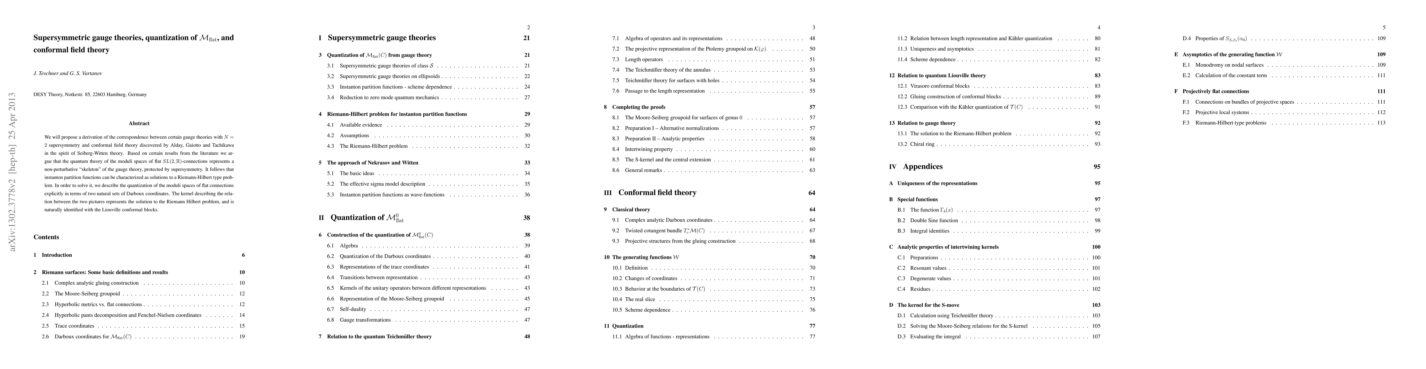 This paper proposes a derivation linking N=2 supersymmetric gauge theories to conformal field theory through Seiberg-Witten theory, arguing that the quantum moduli spaces of flat SL(2,R)-connections form a non-perturbative "skeleton" of the gauge theory. It quantizes these moduli spaces using Darboux coordinates, identifying the kernel between the two descriptions as Liouville conformal blocks.