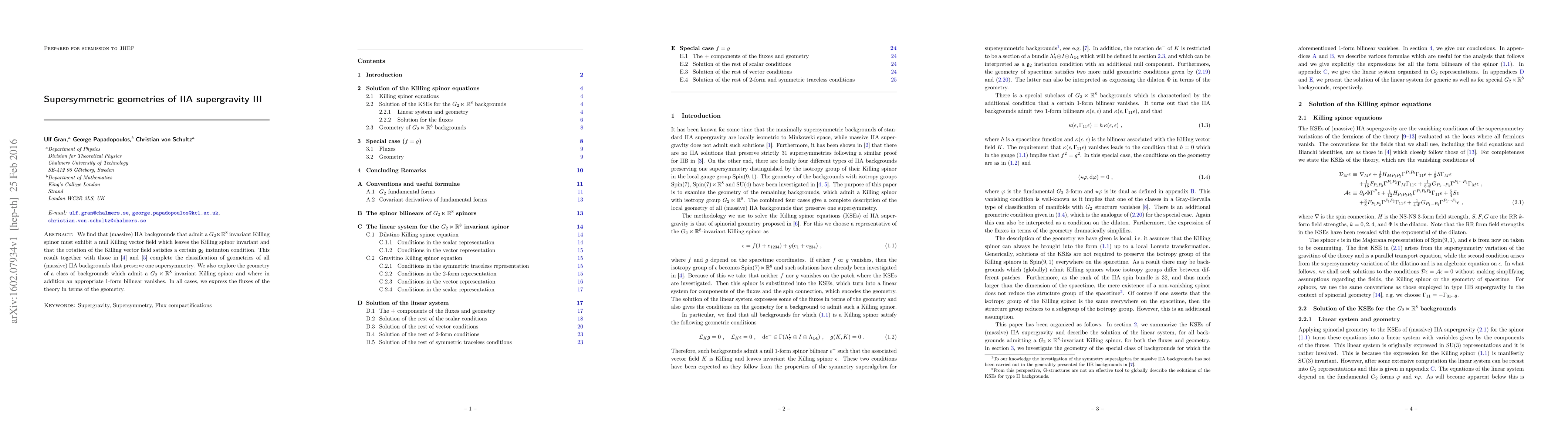 We find that (massive) IIA backgrounds that admit a $G_2\ltimes \mathbb{R}^8$ invariant Killing spinor must exhibit a null Killing vector field which leaves the Killing spinor invariant and that the rotation of the Killing vector field satisfies a certain $\mathfrak{g}_2$ instanton condition. This result together with those in [4] and [5] complete the classification of geometries of all (massive) IIA backgrounds that preserve one supersymmetry. We also explore the geometry of a class of backgrounds which admit a $G_2\ltimes \mathbb{R}^8$ invariant Killing spinor and where in addition an appropriate 1-form bilinear vanishes. In all cases, we express the fluxes of the theory in terms of the geometry.