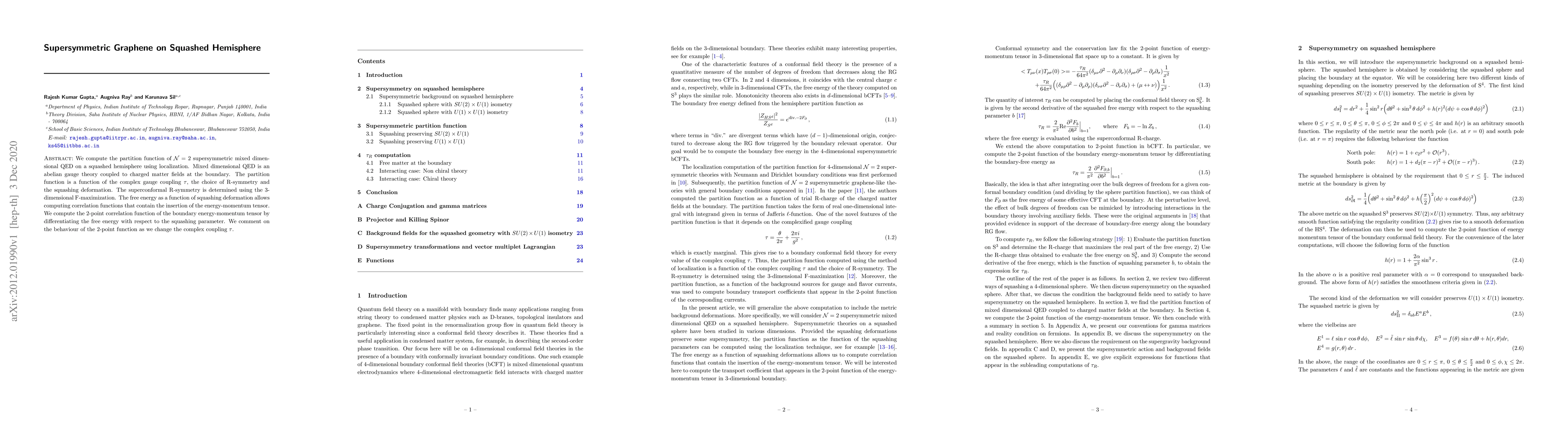 We compute the partition function of $\mathcal N=2$ supersymmetric mixed dimensional QED on a squashed hemisphere using localization. Mixed dimensional QED is an abelian gauge theory coupled to charged matter fields at the boundary. The partition function is a function of the complex gauge coupling $\tau$, the choice of R-symmetry and the squashing deformation. The superconformal R-symmetry is determined using the 3-dimensional F-maximization. The free energy as a function of squashing deformation allows computing correlation functions that contain the insertion of the energy-momentum tensor. We compute the 2-point correlation function of the boundary energy-momentum tensor by differentiating the free energy with respect to the squashing parameter. We comment on the behaviour of the 2-point function as we change the complex coupling $\tau$.