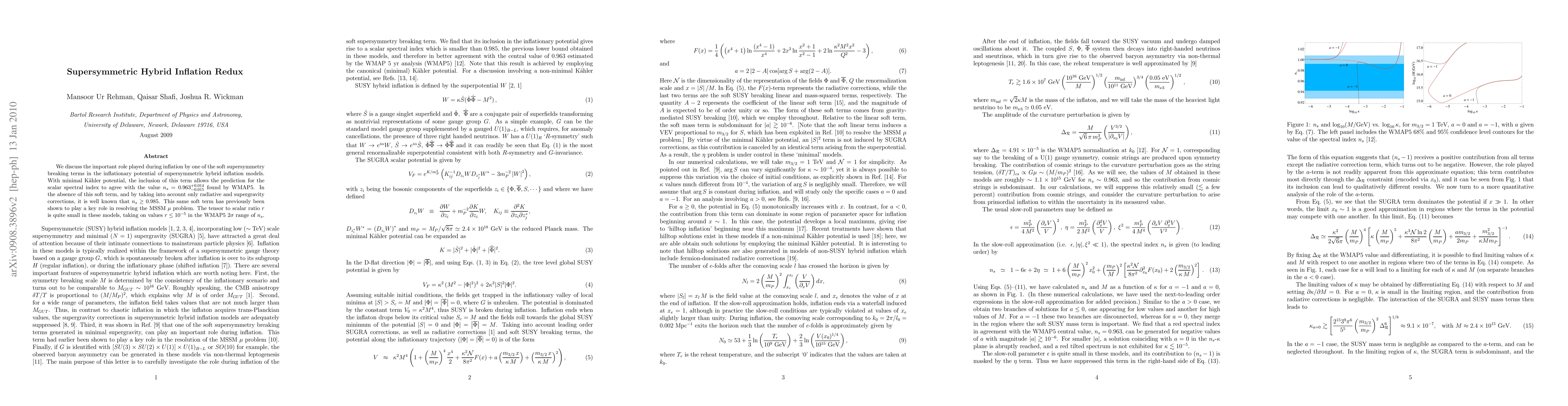This paper explores the impact of a specific soft supersymmetry breaking term in supersymmetric hybrid inflation models, showing it aligns the predicted scalar spectral index with observational data from WMAP5. The tensor to scalar ratio remains small, supporting the model's viability.