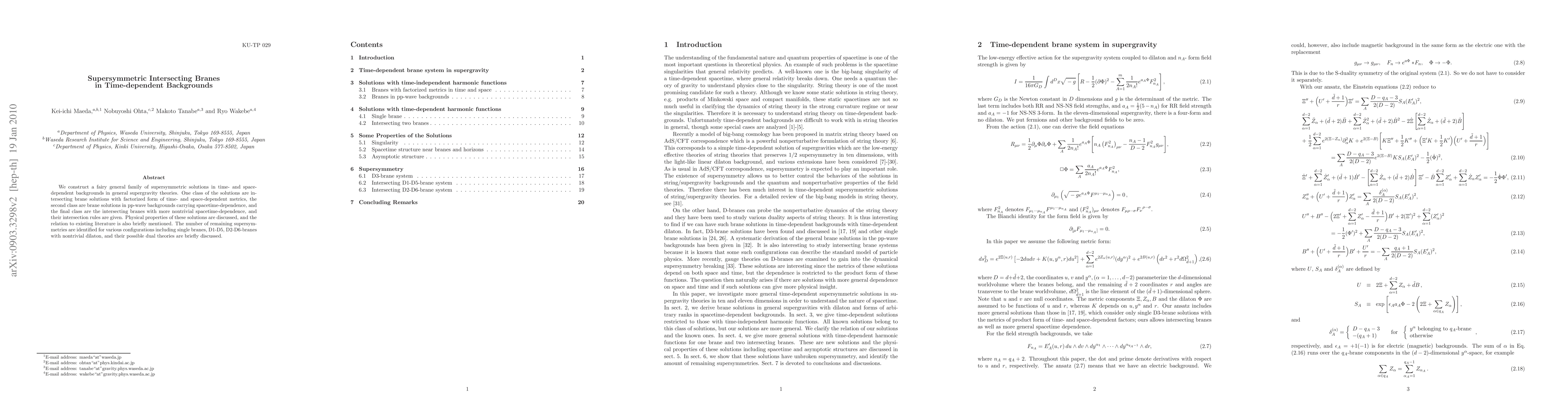 This paper constructs a general family of supersymmetric solutions in supergravity theories, including intersecting branes with time- and space-dependent metrics, pp-wave backgrounds, and more complex spacetime dependencies. It identifies remaining supersymmetries for various configurations and discusses their physical properties and dual theories.