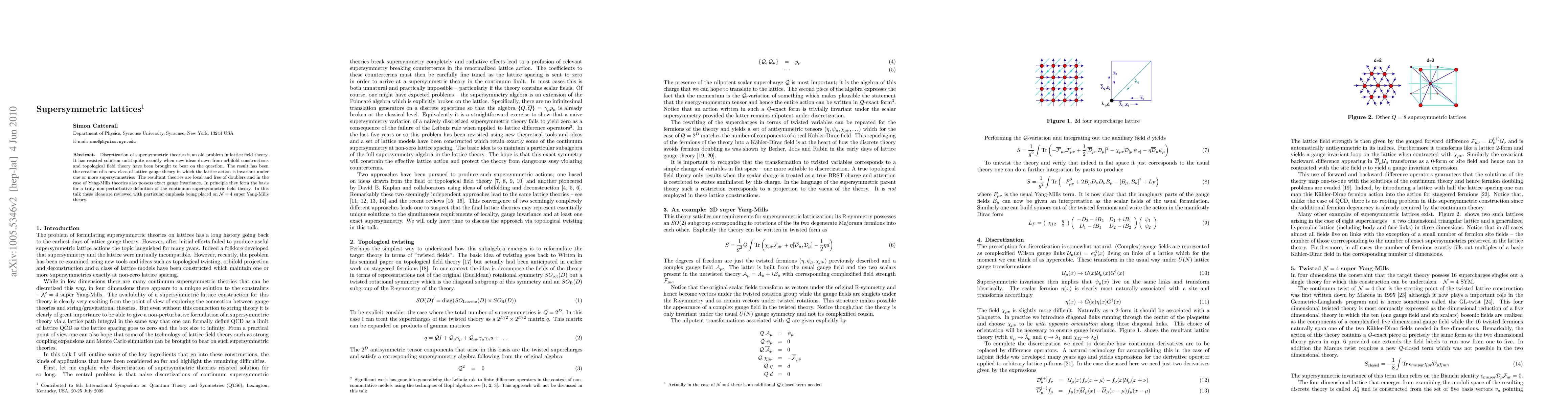 Discretization of supersymmetric theories is an old problem in lattice field theory. It has resisted solution until quite recently when new ideas drawn from orbifold constructions and topological field theory have been brought to bear on the question. The result has been the creation of a new class of lattice gauge theory in which the lattice action is invariant under one or more supersymmetries. The resultant theories are local and free of doublers and in the case of Yang-Mills theories also possess exact gauge invariance. In principle they form the basis for a truly non-perturbative definition of the continuum supersymmetric field theory. In this talk these ideas are reviewed with particular emphasis being placed on ${\cal N}=4$ super Yang-Mills theory.