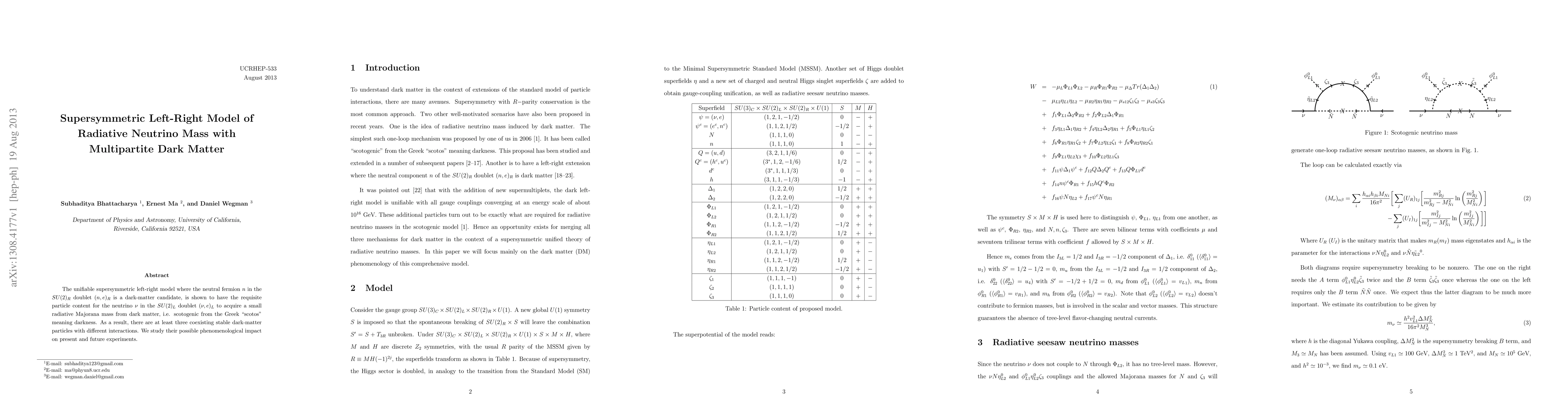 This paper explores a supersymmetric left-right model where the neutral fermion $n$ in the $SU(2)_R$ doublet serves as a dark-matter candidate, enabling the neutrino $\nu$ in the $SU(2)_L$ doublet to acquire a radiative Majorana mass. The model features three stable dark-matter particles with distinct interactions, and their potential phenomenological effects on current and future experiments are investigated.
