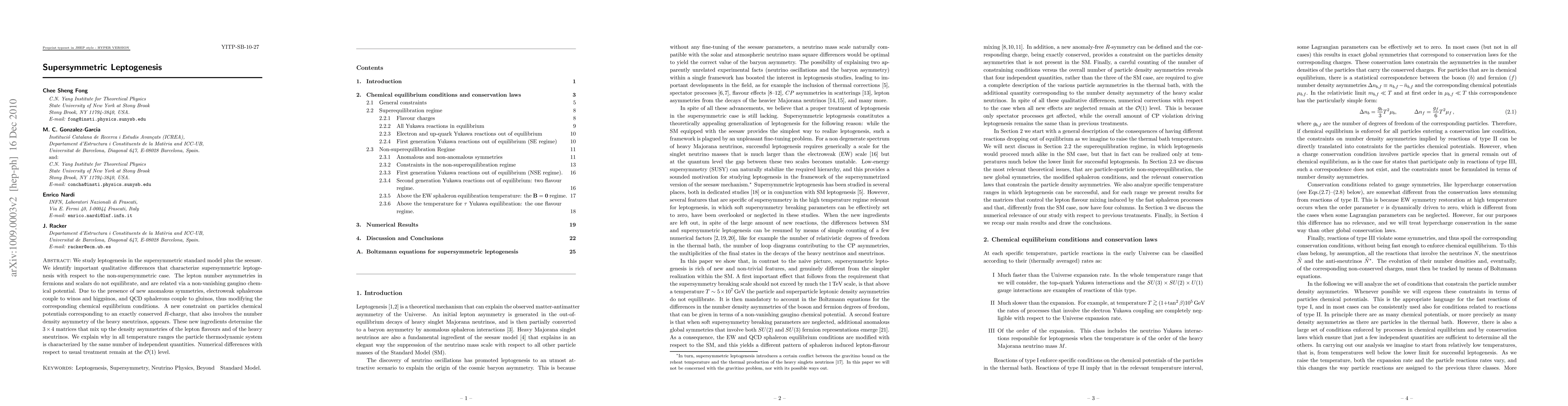 We study leptogenesis in the supersymmetric standard model plus the seesaw. We identify important qualitative differences that characterize supersymmetric leptogenesis with respect to the non-supersymmetric case. The lepton number asymmetries in fermions and scalars do not equilibrate, and are related via a non-vanishing gaugino chemical potential. Due to the presence of new anomalous symmetries, electroweak sphalerons couple to winos and higgsinos, and QCD sphalerons couple to gluinos, thus modifying the corresponding chemical equilibrium conditions. A new constraint on particles chemical potentials corresponding to an exactly conserved $R$-charge, that also involves the number density asymmetry of the heavy sneutrinos, appears. These new ingredients determine the $3\times 4$ matrices that mix up the density asymmetries of the lepton flavours and of the heavy sneutrinos. We explain why in all temperature ranges the particle thermodynamic system is characterized by the same number of independent quantities. Numerical differences with respect to usual treatment remain at the ${\cal O}(1)$ level.