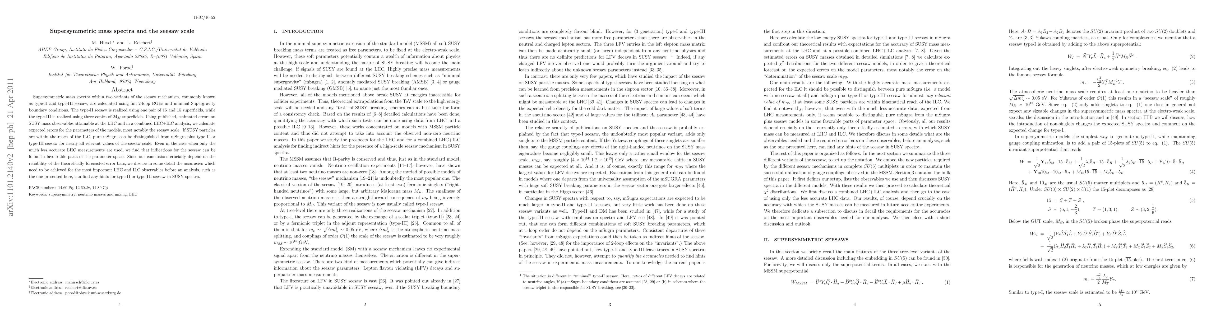 This paper calculates supersymmetric mass spectra in two variants of the seesaw mechanism using full 2-loop RGEs and minimal Supergravity boundary conditions. It finds that the seesaw scale can be distinguished with high precision if SUSY particles are detected at the ILC, and even with less accurate LHC measurements, favorable parameter spaces may indicate the presence of the seesaw.