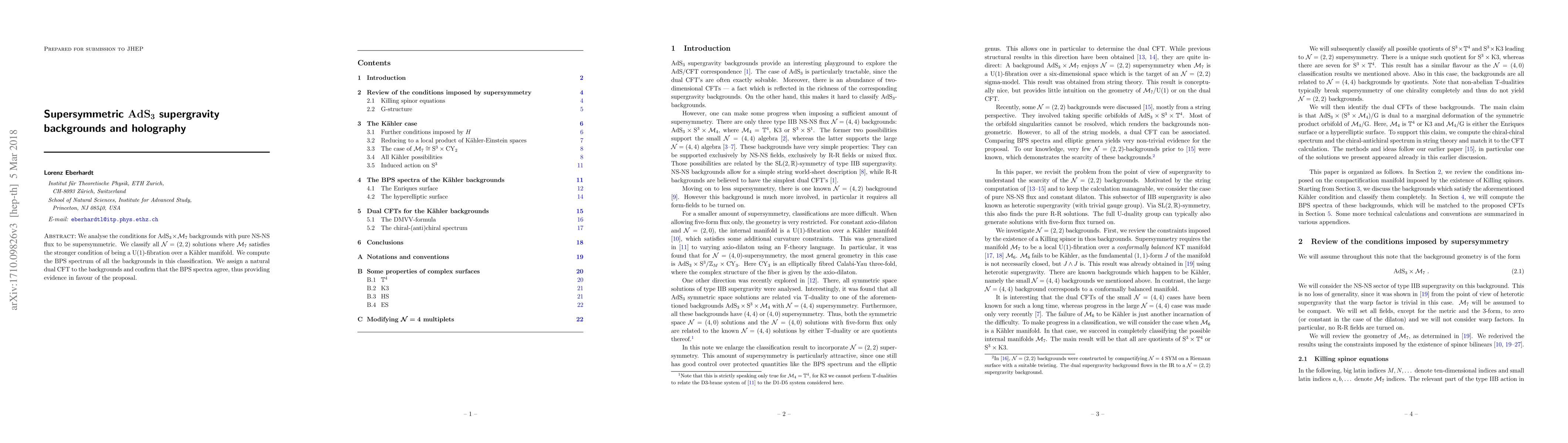 We analyse the conditions for $\mathrm{AdS}_3 \times \mathcal{M}_7$ backgrounds with pure NS-NS flux to be supersymmetric. We find that a necessary condition is that $\mathcal{M}_7$ is a $\mathrm{U}(1)$-fibration over a balanced manifold. We subsequently classify all $\mathcal{N}=(2,2)$ solutions where $\mathcal{M}_7$ satisfies the stronger condition of being a $\mathrm{U}(1)$-fibration over a Kahler manifold. We compute the BPS spectrum of all the backgrounds in this classification. We assign a natural dual CFT to the backgrounds and confirm that the BPS spectra agree, thus providing evidence in favour of the proposal.