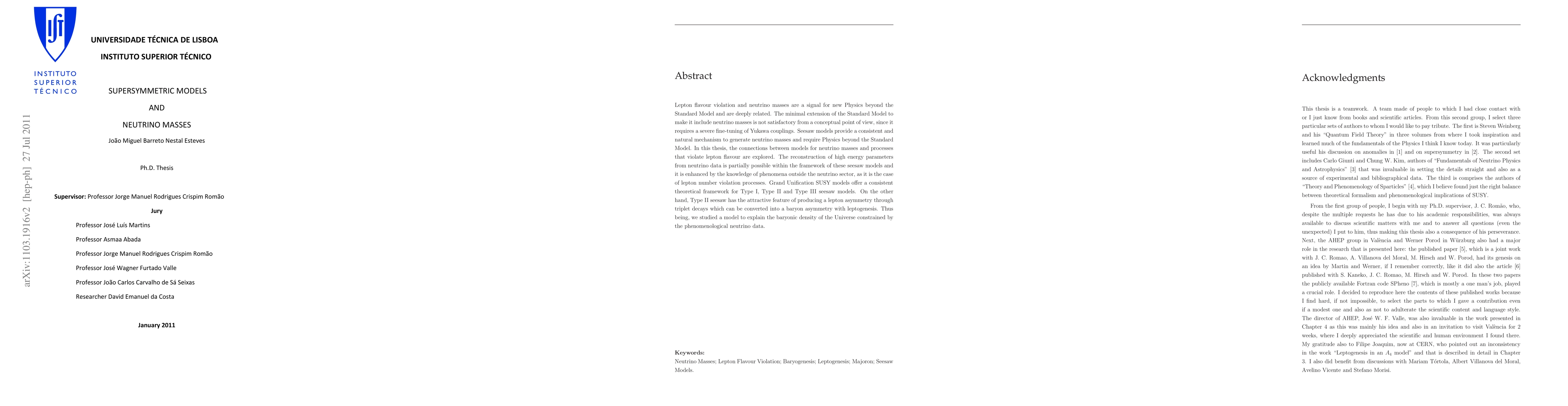 This paper explores supersymmetric models that extend the Standard Model to naturally explain neutrino masses and lepton flavor violation, emphasizing the see-saw mechanism and its implications for grand unification and leptogenesis in the context of baryon asymmetry.