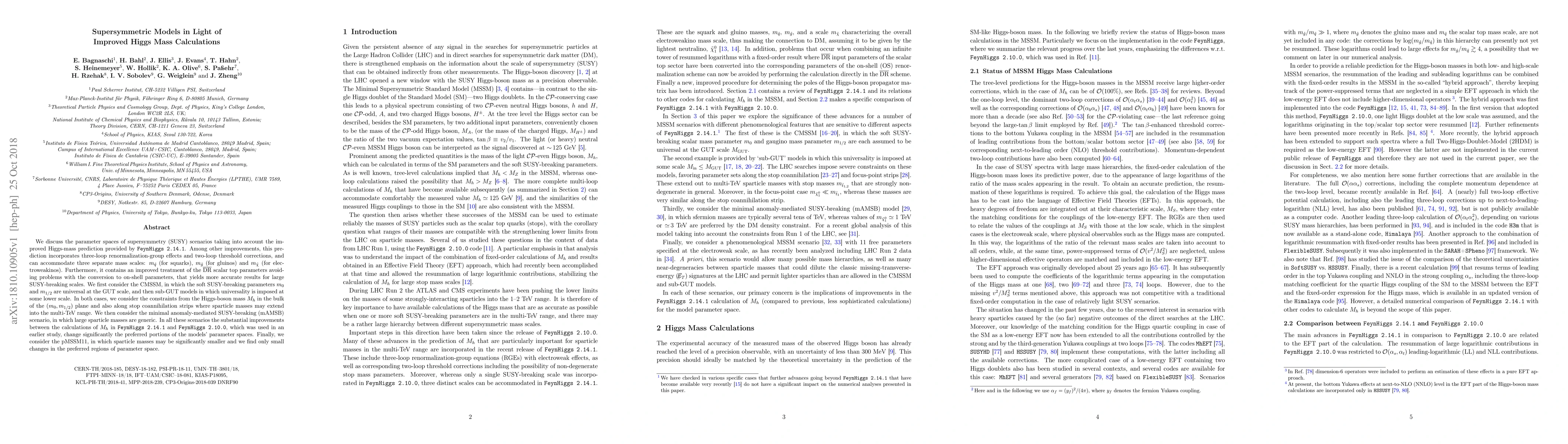 We discuss the parameter spaces of supersymmetry (SUSY) scenarios taking into account the improved Higgs-mass prediction provided by FeynHiggs 2.14.1. Among other improvements, this prediction incorporates three-loop renormalization-group effects and two-loop threshold corrections, and can accommodate three separate mass scales: m_{\tilde q} (for squarks), m_{\tilde g} (for gluinos) and m_{\tilde\chi} (for electroweakinos). Furthermore, it contains an improved treatment of the DRbar scalar top parameters avoiding problems with the conversion to on-shell parameters, that yields more accurate results for large SUSY-breaking scales. We first consider the CMSSM, in which the soft SUSY-breaking parameters m_0 and m_{1/2} are universal at the GUT scale, and then sub-GUT models in which universality is imposed at some lower scale. In both cases, we consider the constraints from the Higgs-boson mass M_h in the bulk of the (m_0, m_{1/2}) plane and also along stop coannihilation strips where sparticle masses may extend into the multi-TeV range. We then consider the minimal anomaly-mediated SUSY-breaking (mAMSB) scenario, in which large sparticle masses are generic. In all these scenarios the substantial improvements between the calculations of M_h in FeynHiggs 2.14.1 and FeynHiggs 2.10.0, which was used in an earlier study, change significantly the preferred portions of the models' parameter spaces. Finally, we consider the pMSSM11, in which sparticle masses may be significantly smaller and we find only small changes in the preferred regions of parameter space.