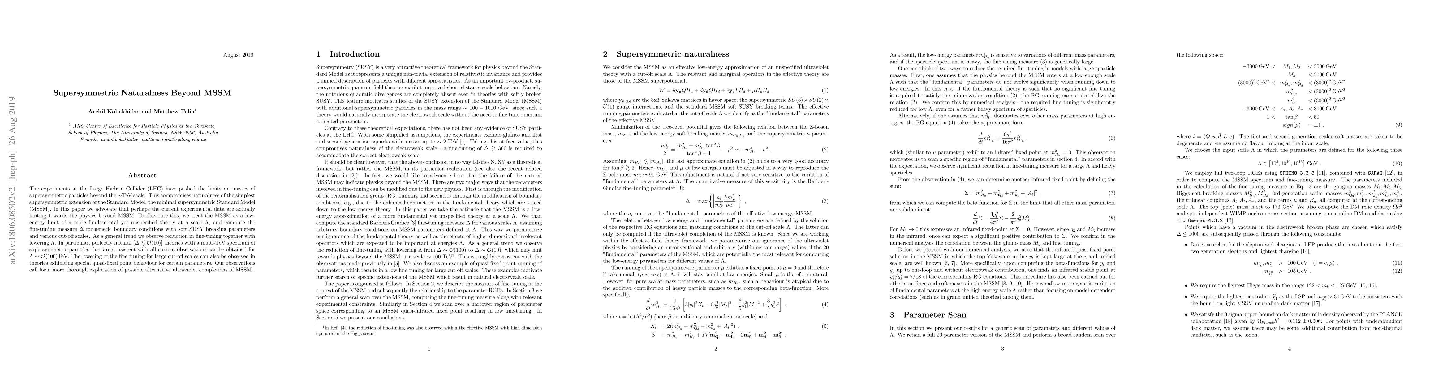 This paper argues that the LHC's constraints on supersymmetric particle masses suggest physics beyond the MSSM, proposing that the MSSM is a low-energy limit of a more fundamental theory. It finds that reducing the cut-off scale $\Lambda$ can significantly lower the fine-tuning measure, indicating natural theories with a multi-TeV spectrum at $\Lambda \sim \mathcal{O}(100)$TeV.