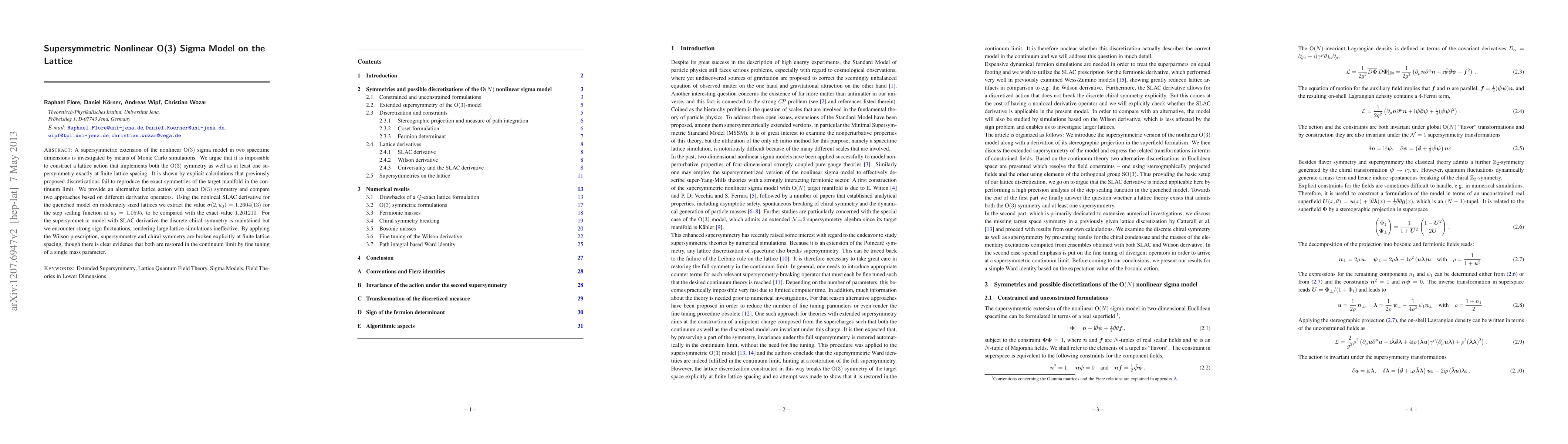 This paper investigates a supersymmetric extension of the nonlinear O(3) sigma model using Monte Carlo simulations, finding that no lattice action can exactly preserve both O(3) symmetry and supersymmetry. It proposes an alternative lattice action with exact O(3) symmetry and demonstrates the failure of previously proposed discretizations.