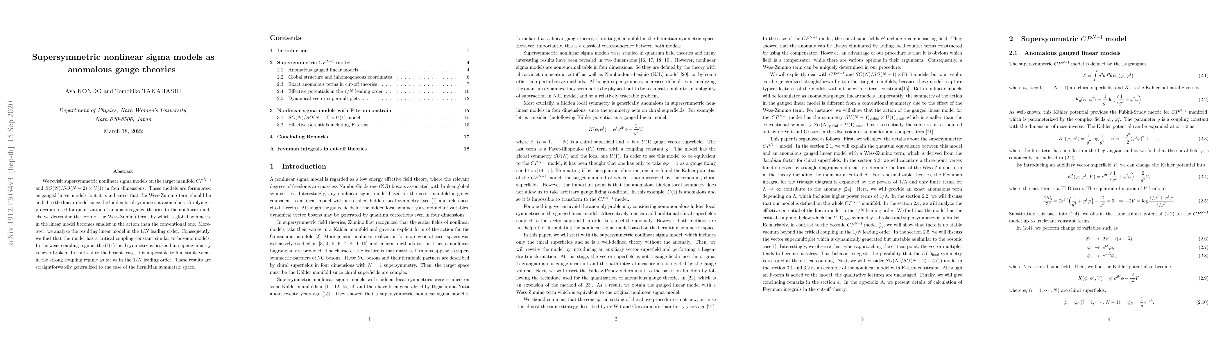 This paper revisits supersymmetric nonlinear sigma models on $CP^{N-1}$ and $SO(N)/SO(N-2)\times U(1)$ in four dimensions, incorporating the Wess-Zumino term to address anomalous gauge symmetries. It finds that the model has a critical coupling constant akin to bosonic models, with supersymmetry preserved in the weak coupling regime but no stable vacua in the strong coupling regime.