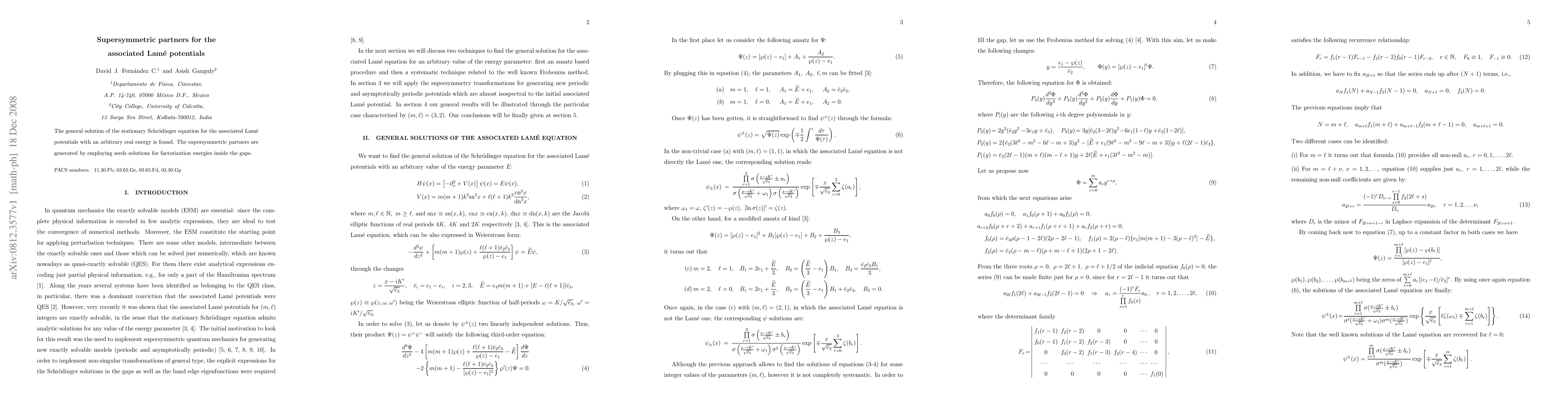 This paper presents the general solution for the stationary Schrödinger equation of associated Lame potentials and introduces supersymmetric partners generated through factorization using seed solutions within energy gaps.