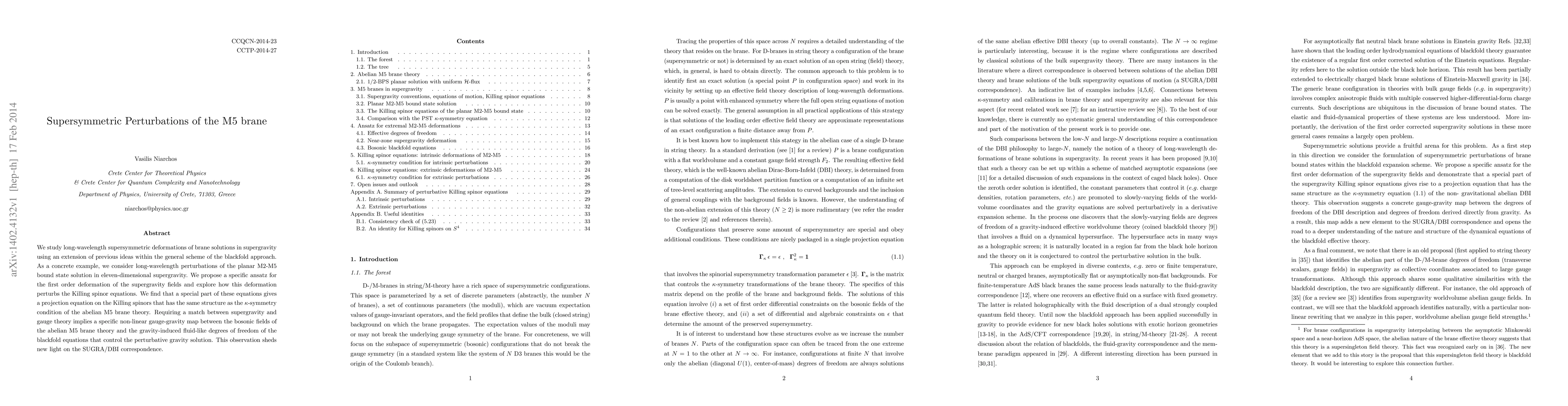 This paper investigates long-wavelength supersymmetric perturbations of the M5 brane using the blackfold approach and finds a specific ansatz that reveals a non-linear gauge-gravity map, enhancing the understanding of the SUGRA/DBI correspondence.