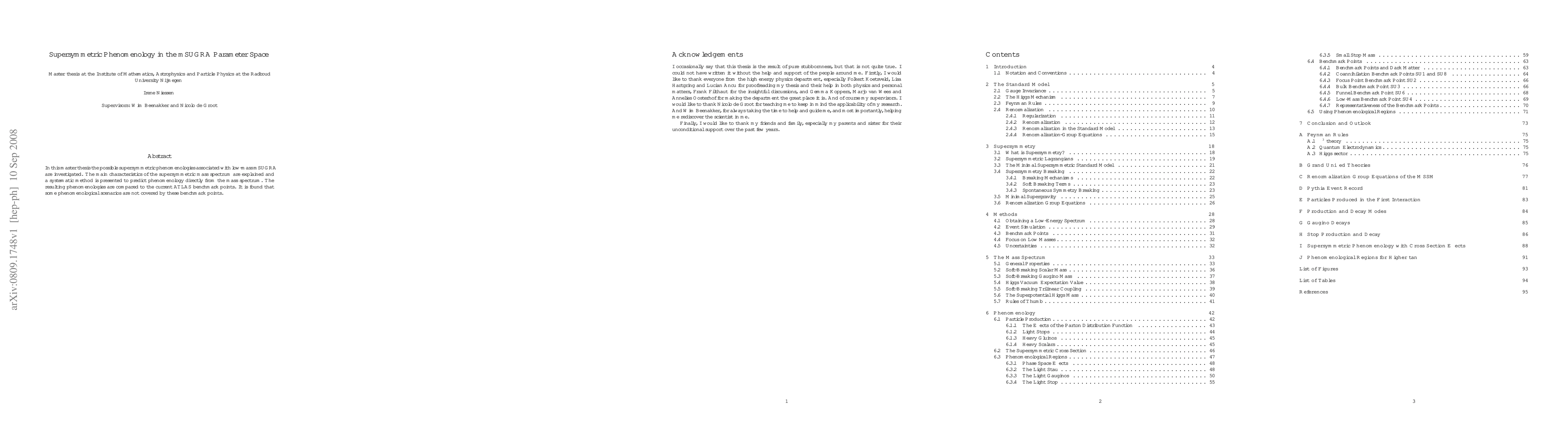 In this master thesis the possible supersymmetric phenomenologies associated with low-mass mSUGRA are investigated. The main characteristics of the supersymmetric mass spectrum are explained and a systematic method is presented to predict phenomenology directly from the mass spectrum. The resulting phenomenologies are compared to the current ATLAS benchmark points. It is found that some phenomenological scenarios are not covered by these benchmark points.