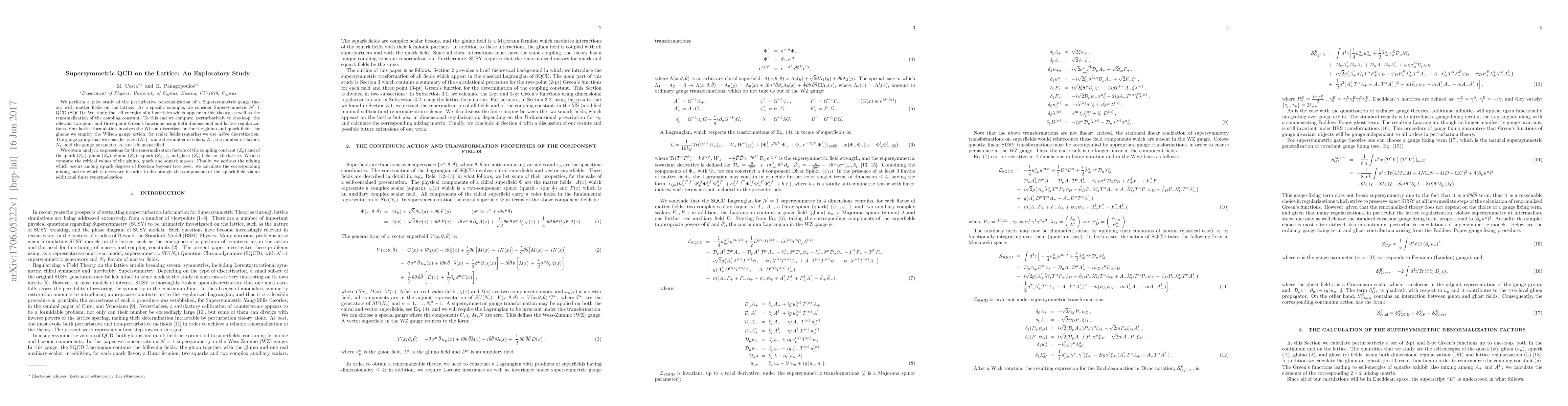 We perform a pilot study of the perturbative renormalization of a Supersymmetric gauge theory with matter fields on the lattice. As a specific example, we consider Supersymmetric ${\cal N}{=}1$ QCD (SQCD). We study the self-energies of all particles which appear in this theory, as well as the renormalization of the coupling constant. To this end we compute, perturbatively to one-loop, the relevant two-point and three-point Green's functions using both dimensional and lattice regularizations. Our lattice formulation involves the Wilson discretization for the gluino and quark fields; for gluons we employ the Wilson gauge action; for scalar fields (squarks) we use na\"ive discretization. The gauge group that we consider is $SU(N_c)$, while the number of colors, $N_c$, the number of flavors, $N_f$, and the gauge parameter, $\alpha$, are left unspecified. We obtain analytic expressions for the renormalization factors of the coupling constant ($Z_g$) and of the quark ($Z_\psi$), gluon ($Z_u$), gluino ($Z_\lambda$), squark ($Z_{A_\pm}$), and ghost ($Z_c$) fields on the lattice. We also compute the critical values of the gluino, quark and squark masses. Finally, we address the mixing which occurs among squark degrees of freedom beyond tree level: we calculate the corresponding mixing matrix which is necessary in order to disentangle the components of the squark field via an additional finite renormalization.