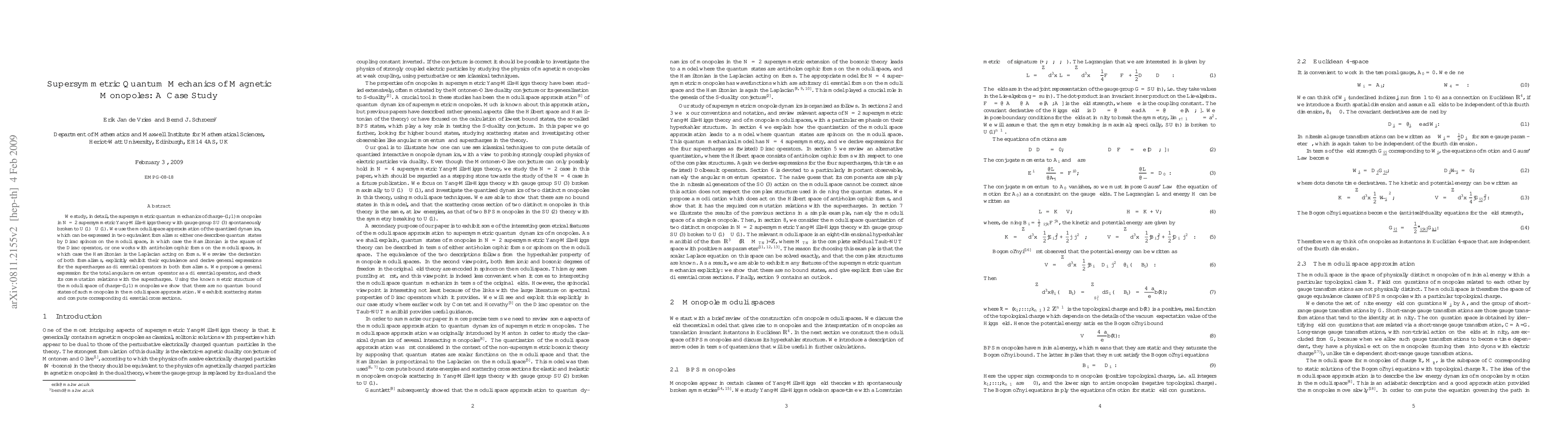 We study, in detail, the supersymmetric quantum mechanics of charge-(1,1) monopoles in N=2 supersymmetric Yang-Mills-Higgs theory with gauge group SU(3) spontaneously broken to U(1) x U(1). We use the moduli space approximation of the quantised dynamics, which can be expressed in two equivalent formalisms: either one describes quantum states by Dirac spinors on the moduli space, in which case the Hamiltonian is the square of the Dirac operator, or one works with anti-holomorphic forms on the moduli space, in which case the Hamiltonian is the Laplacian acting on forms. We review the derivation of both formalisms, explicitly exhibit their equivalence and derive general expressions for the supercharges as differential operators in both formalisms. We propose a general expression for the total angular momentum operator as a differential operator, and check its commutation relations with the supercharges. Using the known metric structure of the moduli space of charge-(1,1) monopoles we show that there are no quantum bound states of such monopoles in the moduli space approximation. We exhibit scattering states and compute corresponding differential cross sections.