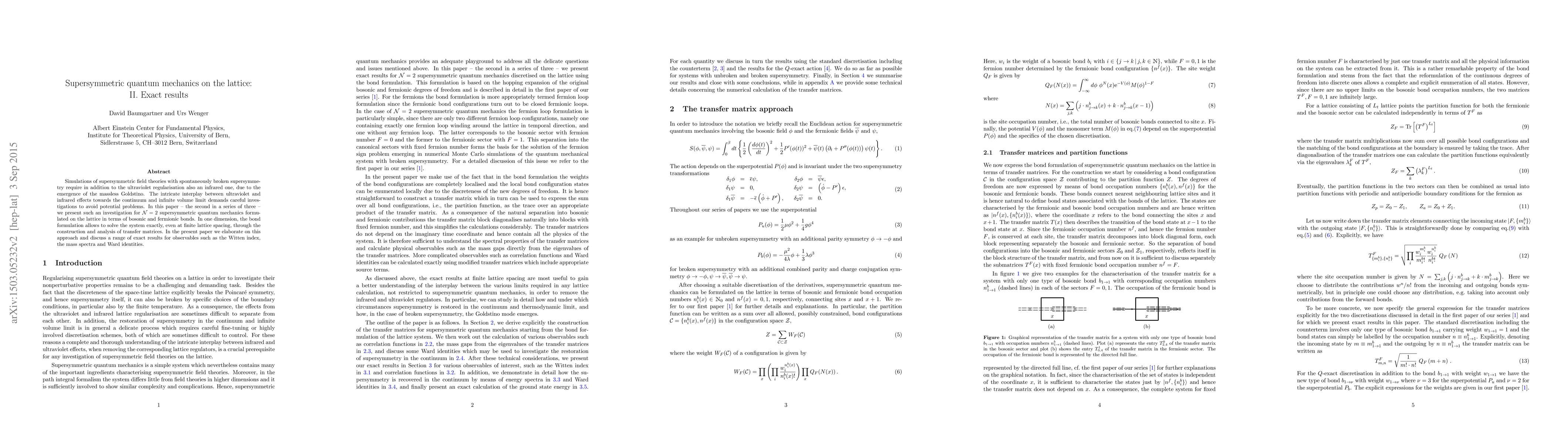 Simulations of supersymmetric field theories with spontaneously broken supersymmetry require in addition to the ultraviolet regularisation also an infrared one, due to the emergence of the massless Goldstino. The intricate interplay between ultraviolet and infrared effects towards the continuum and infinite volume limit demands careful investigations to avoid potential problems. In this paper -- the second in a series of three -- we present such an investigation for ${\cal N}=2$ supersymmetric quantum mechanics formulated on the lattice in terms of bosonic and fermionic bonds. In one dimension, the bond formulation allows to solve the system exactly, even at finite lattice spacing, through the construction and analysis of transfer matrices. In the present paper we elaborate on this approach and discuss a range of exact results for observables such as the Witten index, the mass spectra and Ward identities.