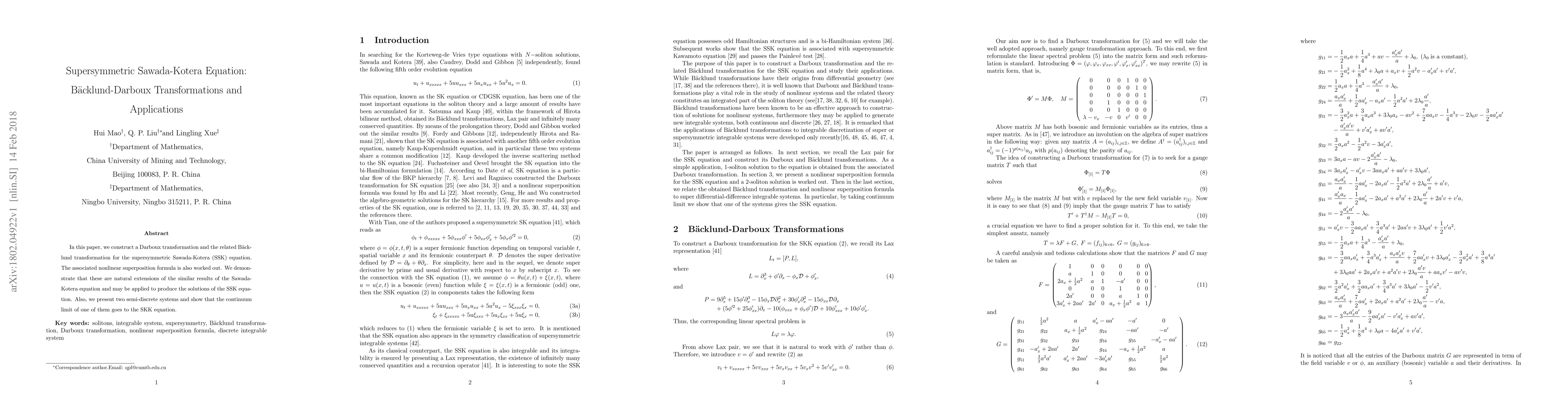 This paper constructs Darboux and Bäcklund transformations for the supersymmetric Sawada-Kotera equation, deriving a nonlinear superposition formula. It demonstrates these transformations as extensions of similar results for the Sawada-Kotera equation and applies them to generate solutions, also presenting semi-discrete systems with a continuum limit reverting to the SSK equation.