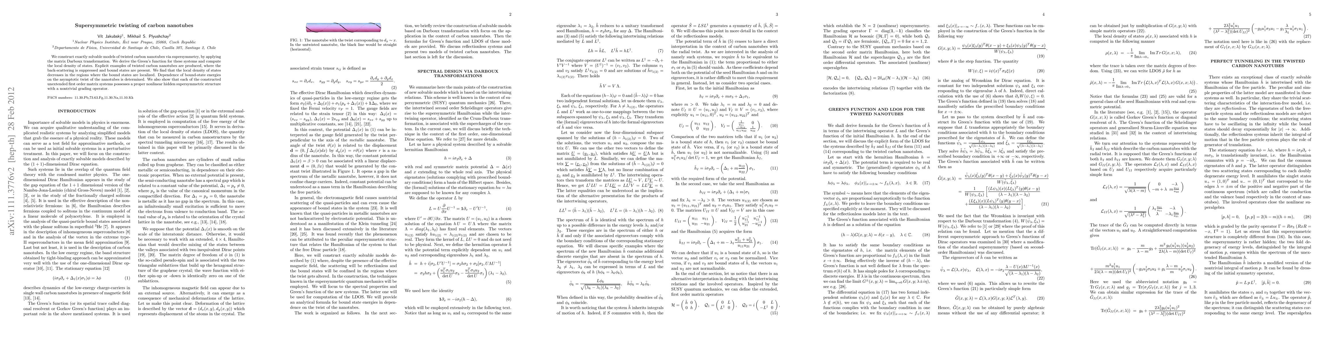 Researchers used supersymmetry to create solvable models of twisted carbon nanotubes, finding that bound states reduce local density of states, and the twist affects bound-state energies.