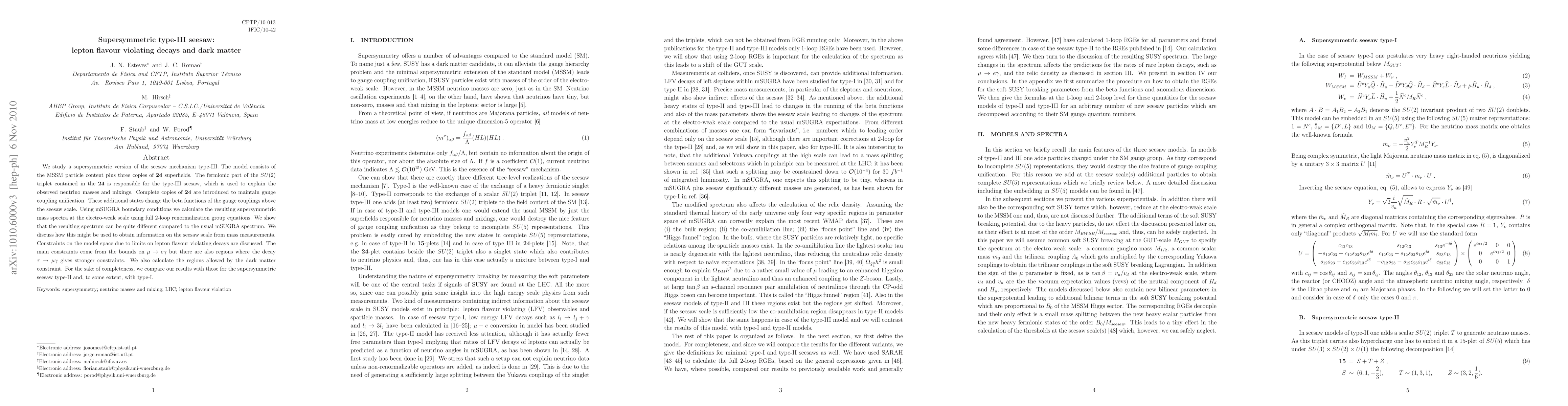 This paper explores a supersymmetric type-III seesaw model, extending the MSSM with additional SU(2) triplets to explain neutrino masses. It calculates the modified mass spectra and discusses implications for lepton flavour violating decays and dark matter constraints.