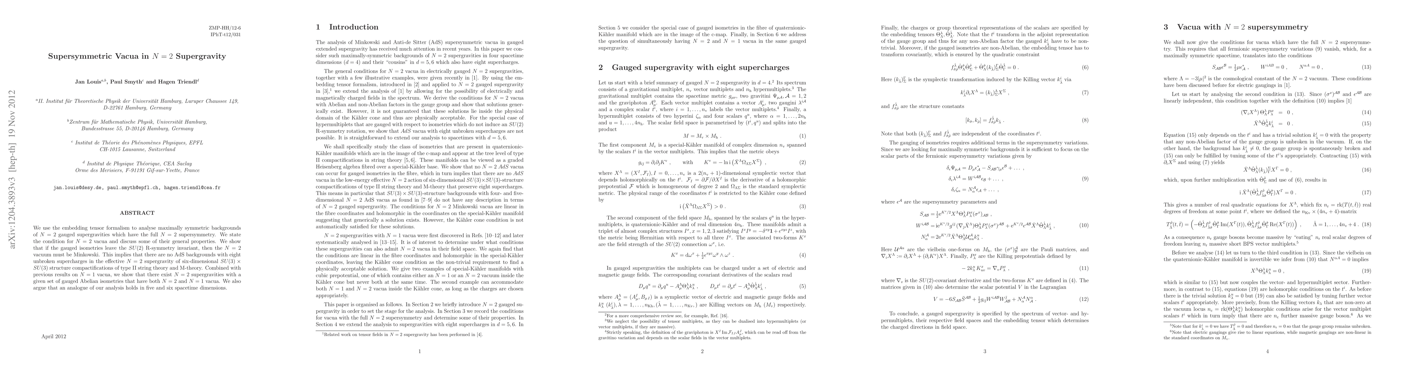 This paper examines N=2 supersymmetric vacua in gauged supergravity using the embedding tensor formalism, finding that N=2 vacua with invariant SU(2) R-symmetry must be Minkowski, ruling out AdS backgrounds with eight unbroken supercharges in six-dimensional SU(3) x SU(3) compactifications of type II string theory and M-theory. It also demonstrates the coexistence of N=2 and N=1 vacua in certain N=2 supergravities.