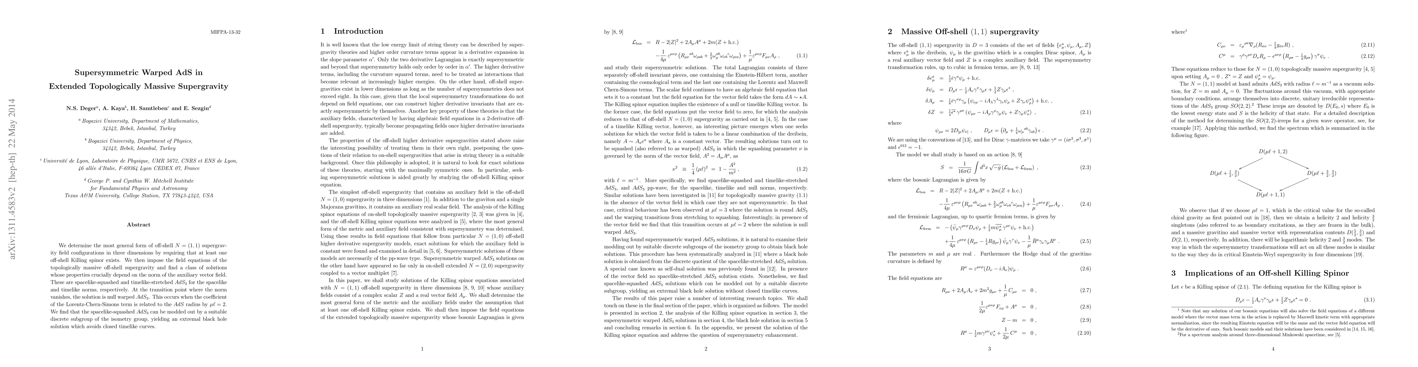 This paper explores the most general off-shell N=(1,1) supergravity configurations in three dimensions, identifying solutions dependent on the norm of an auxiliary vector field. It finds warped AdS_3 solutions, with a transition to null warped AdS_3 when the norm vanishes, and shows that spacelike-squashed AdS_3 can yield extremal black hole solutions without closed timelike curves.