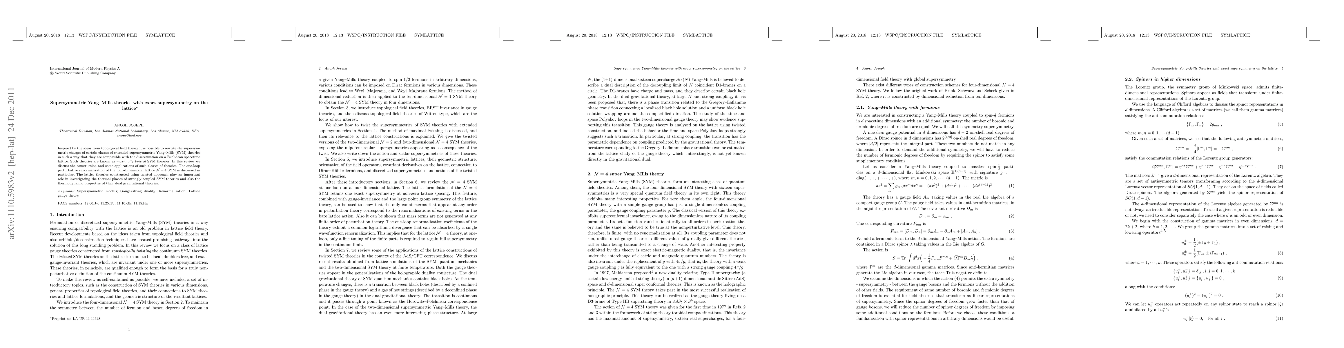 Inspired by the ideas from topological field theory it is possible to rewrite the supersymmetric charges of certain classes of extended supersymmetric Yang--Mills (SYM) theories in such a way that they are compatible with the discretization on a Euclidean spacetime lattice. Such theories are known as maximally twisted SYM theories. In this review we discuss the construction and some applications of such classes of theories. The one-loop perturbative renormalization of the four-dimensional lattice ${\cal N}=4$ SYM is discussed in particular. The lattice theories constructed using twisted approach play an important role in investigating the thermal phases of strongly coupled SYM theories and also the thermodynamic properties of their dual gravitational theories.