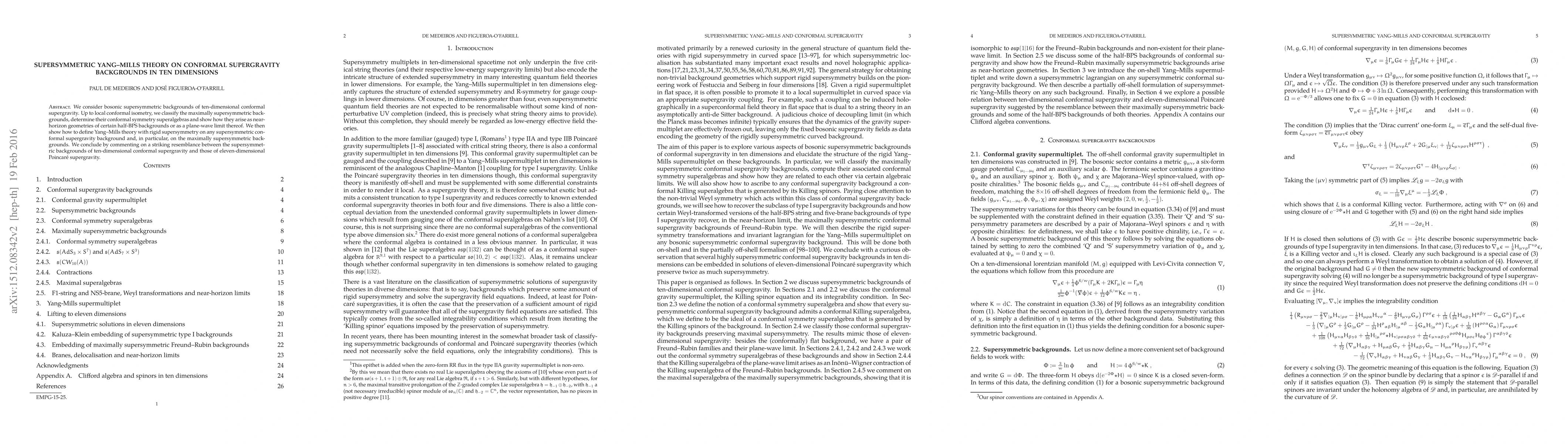 This research classifies maximally supersymmetric backgrounds in ten-dimensional conformal supergravity, determines their conformal symmetry superalgebras, and demonstrates their emergence from near-horizon geometries of half-BPS configurations. It also outlines how to define Yang-Mills theory with rigid supersymmetry on these backgrounds, highlighting a notable similarity to backgrounds in eleven-dimensional Poincaré supergravity.