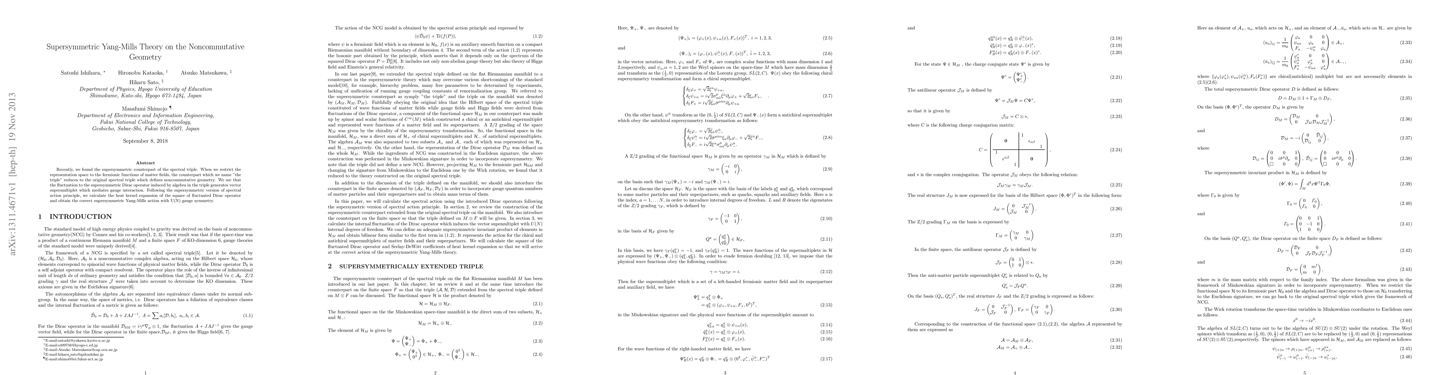 This paper presents the supersymmetric version of spectral triples in noncommutative geometry, demonstrating that it reduces to the original spectral triple. The study reveals that fluctuations in the supersymmetric Dirac operator generate vector supermultiplets mediating gauge interactions and derives the supersymmetric Yang-Mills action with U(N) gauge symmetry using the spectral action principle.