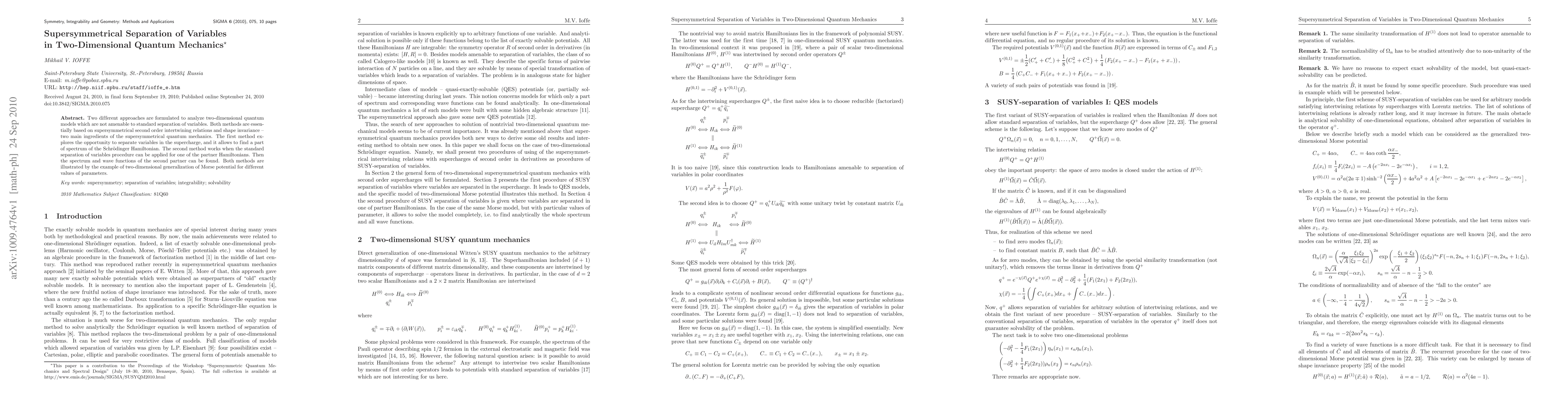 Two different approaches are formulated to analyze two-dimensional quantum models which are not amenable to standard separation of variables. Both methods are essentially based on supersymmetrical second order intertwining relations and shape invariance - two main ingredients of the supersymmetrical quantum mechanics. The first method explores the opportunity to separate variables in the supercharge, and it allows to find a part of spectrum of the Schr\"odinger Hamiltonian. The second method works when the standard separation of variables procedure can be applied for one of the partner Hamiltonians. Then the spectrum and wave functions of the second partner can be found. Both methods are illustrated by the example of two-dimensional generalization of Morse potential for different values of parameters.