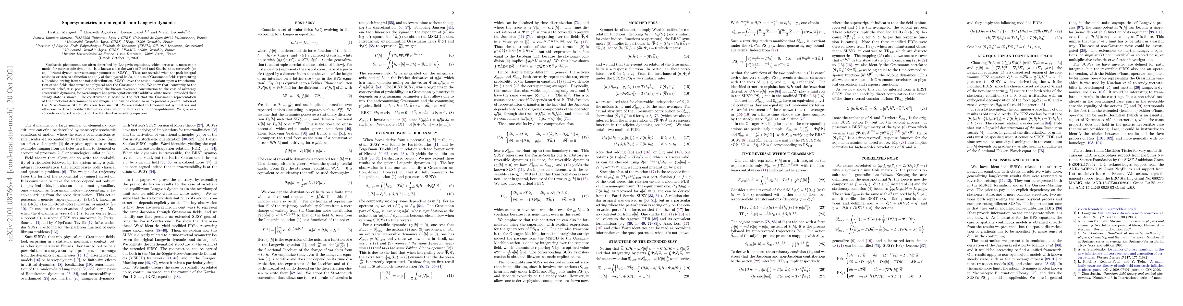 Researchers found that supersymmetries in non-equilibrium Langevin dynamics can be extended to arbitrary irreversible dynamics for overdamped systems with known steady states, allowing for modified fluctuation-dissipation relations.