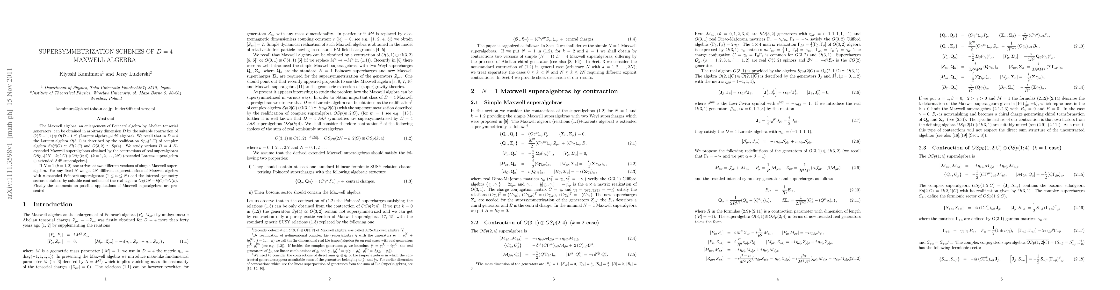 The Maxwell algebra, an enlargement of Poincare algebra by Abelian tensorial generators, can be obtained in arbitrary dimension D by the suitable contraction of O(D-1,1) \oplus O(D-1,2) (Lorentz algebra \oplus AdS algebra). We recall that in D=4 the Lorentz algebra O(3,1) is described by the realification Sp_R(2|C) of complex algebra Sp(2|C)\simeq Sl(2|C) and O(3,2)\simeq Sp(4). We study various D=4 N-extended Maxwell superalgebras obtained by the contractions of real superalgebras OSp_R(2N-k; 2|C)\oplus OSp(k;4), (k=1,2,...,2N) (extended Lorentz superalgebra \oplus extended AdS superalgebra). If N=1 (k=1,2) one arrives at two different versions of simple Maxwell superalgebra. For any fixed N we get 2N different superextensions of Maxwell algebra with n-extended Poincare superalgebras (1\leq n \leq N) and the internal symmetry sectors obtained by suitable contractions of the real algebra O_R(2N-k|C)\oplus O(k). Finally the comments on possible applications of Maxwell superalgebras are presented.