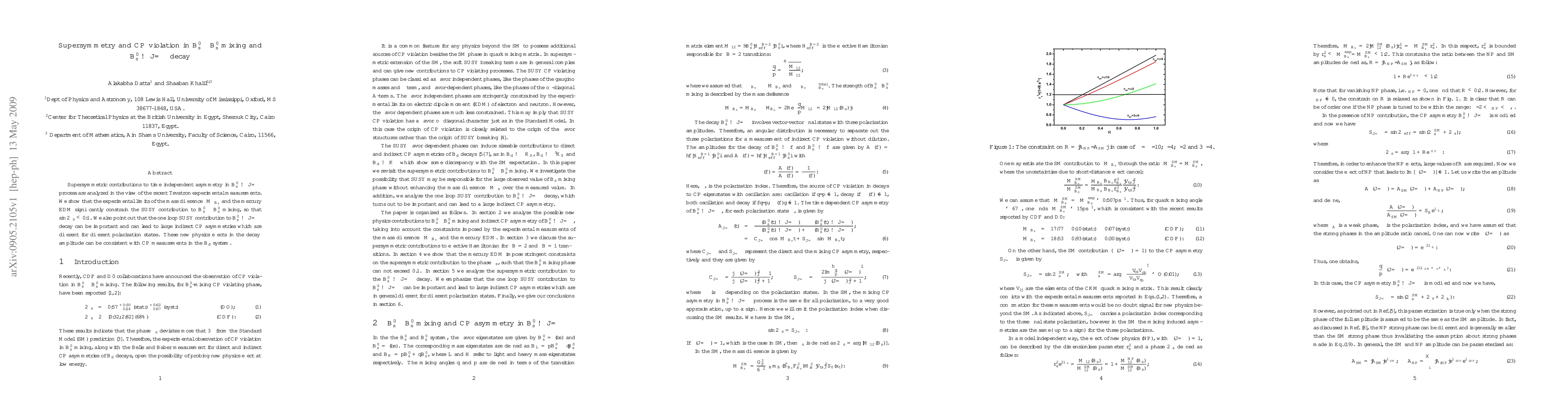 Supersymmetric contributions to time independent asymmetry in $B^0_s \to J/\psi \phi$ process are analyzed in the view of the recent Tevatron experimental measurements. We show that the experimental limits of the mass difference $\Delta M_{B_s}$ and the mercury EDM significantly constrain the SUSY contribution to $B^0_s -\bar{B}^0_s$ mixing, so that $\sin 2 \beta_s \lsim 0.1$. We also point out that the one loop SUSY contribution to $B^0_s \to J/\psi \phi$ decay can be important and can lead to large indirect CP asymmetries which are different for different polarization states. These new physics effects in the decay amplitude can be consistent with CP measurements in the $B_d$ system.