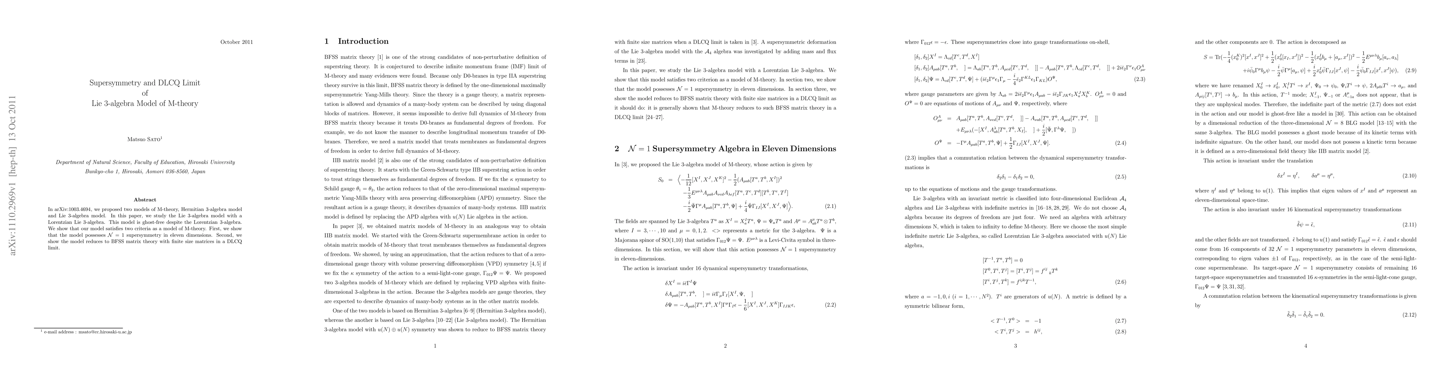 In arXiv:1003.4694, we proposed two models of M-theory, Hermitian 3-algebra model and Lie 3-algebra model. In this paper, we study the Lie 3-algebra model with a Lorentzian Lie 3-algebra. This model is ghost-free despite the Lorentzian 3-algebra. We show that our model satisfies two criteria as a model of M-theory. First, we show that the model possesses N=1 supersymmetry in eleven dimensions. Second, we show the model reduces to BFSS matrix theory with finite size matrices in a DLCQ limit.