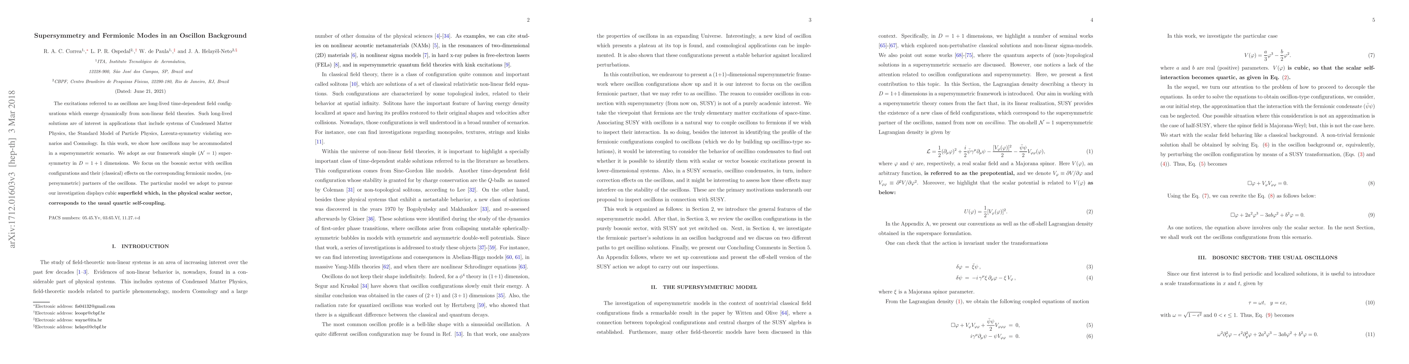 This paper explores the incorporation of oscillons, long-lived dynamic field configurations, within a supersymmetric framework, specifically focusing on the interactions between bosonic oscillon configurations and their fermionic partners in a simple $\mathcal{N}=1$ supersymmetric model in $D=1+1$ dimensions. The study highlights the classical effects of oscillons on corresponding fermionic modes.